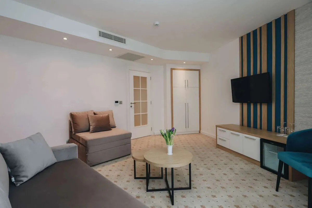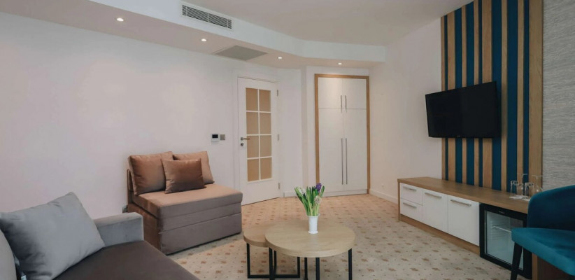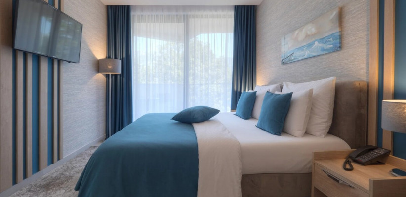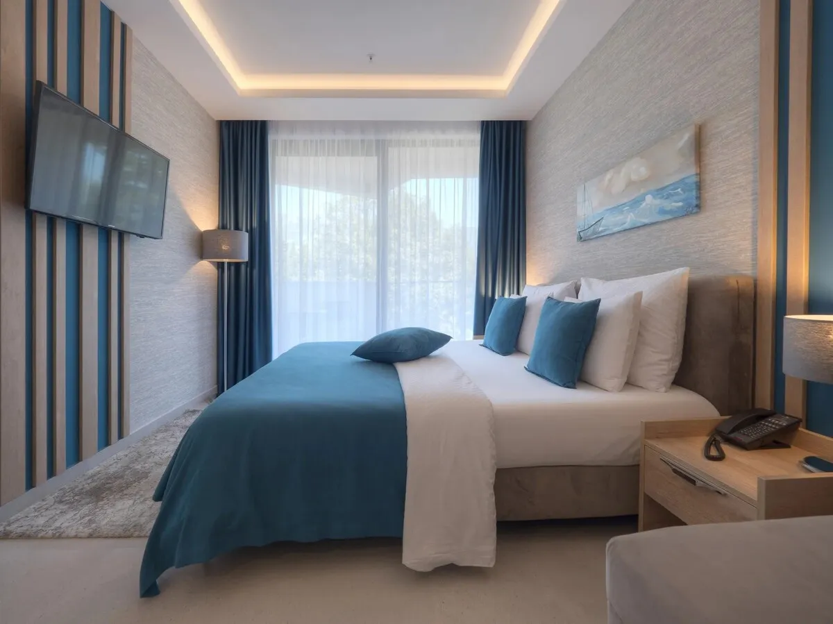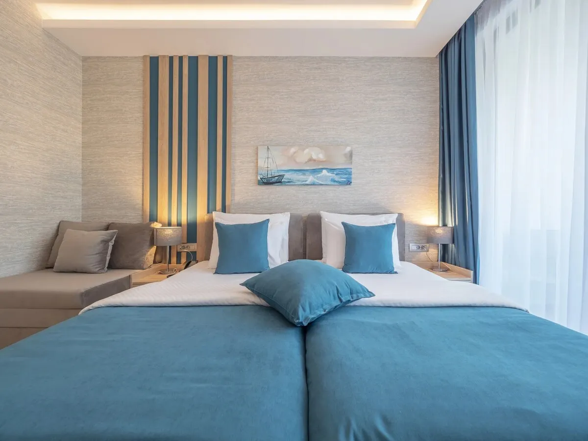 27 м2, две односпальные или двуспальная кровать, кресло-кровать, рабочая зона, балкон. Количество гостей: 3.Superior Seaside/ Улучшенный номер с видом на море