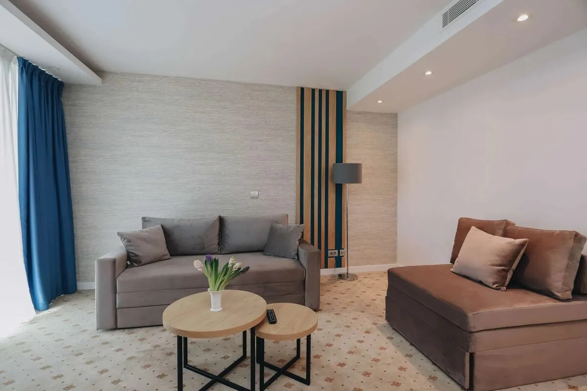 42 м2, двуспальная кровать, диван, кресло-кровать, гостиная, рабочая зона, балкон. Количество гостей: 5.Apartments/ Апартаменты