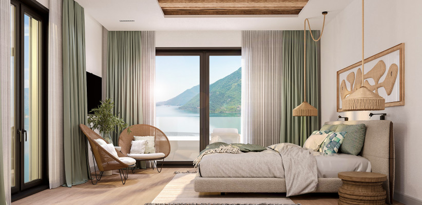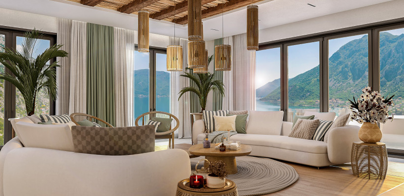 Курорт выполнен в элегантном средиземноморском стиле с использованием современных технологий и экологических решений. Из резиденций открываются панорамные виды на залив и горы, а архитектура гармонично сочетает современные элементы с традициями Черногории. Удобное расположение обеспечивает легкий доступ к инфраструктуре региона, а также находится в 45 минутах от аэропорта Тиват.