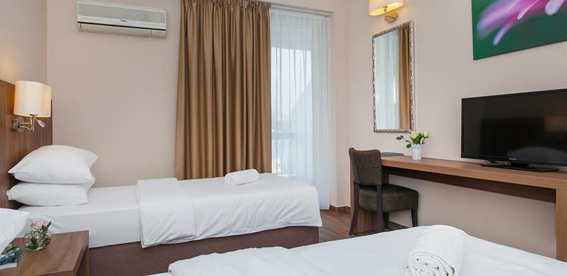 Гостям предлагают сто четыре комфортных двухместных номера с кондиционером, душем, телевизором и бесплатным Wi-Fi. В большинстве комнат есть балкон, на котором стоят столик и стулья. В качестве спальных мест в номерах предусмотрена одна двухспальная кровать или две односпальных. Уборка производится регулярно. Обслуживание круглосуточное.