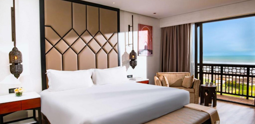 82 м2, с видом на океан, отдельная гостиная зона, терраса. В номере: king-size кровать. Максимальное количество гостей: 2 взрослых и 2 детей.Mazagan Suite