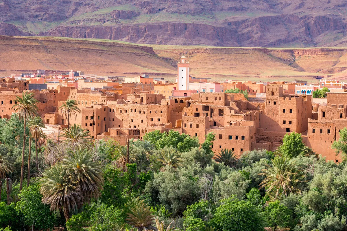 Дорога пройдет по долине Тингира – живописному оазису на «Дороге тысячи Касб». По пути остановка в знаменитом ущелье Тодра, где отвесные скалы меняют оттенки под лучами солнца.