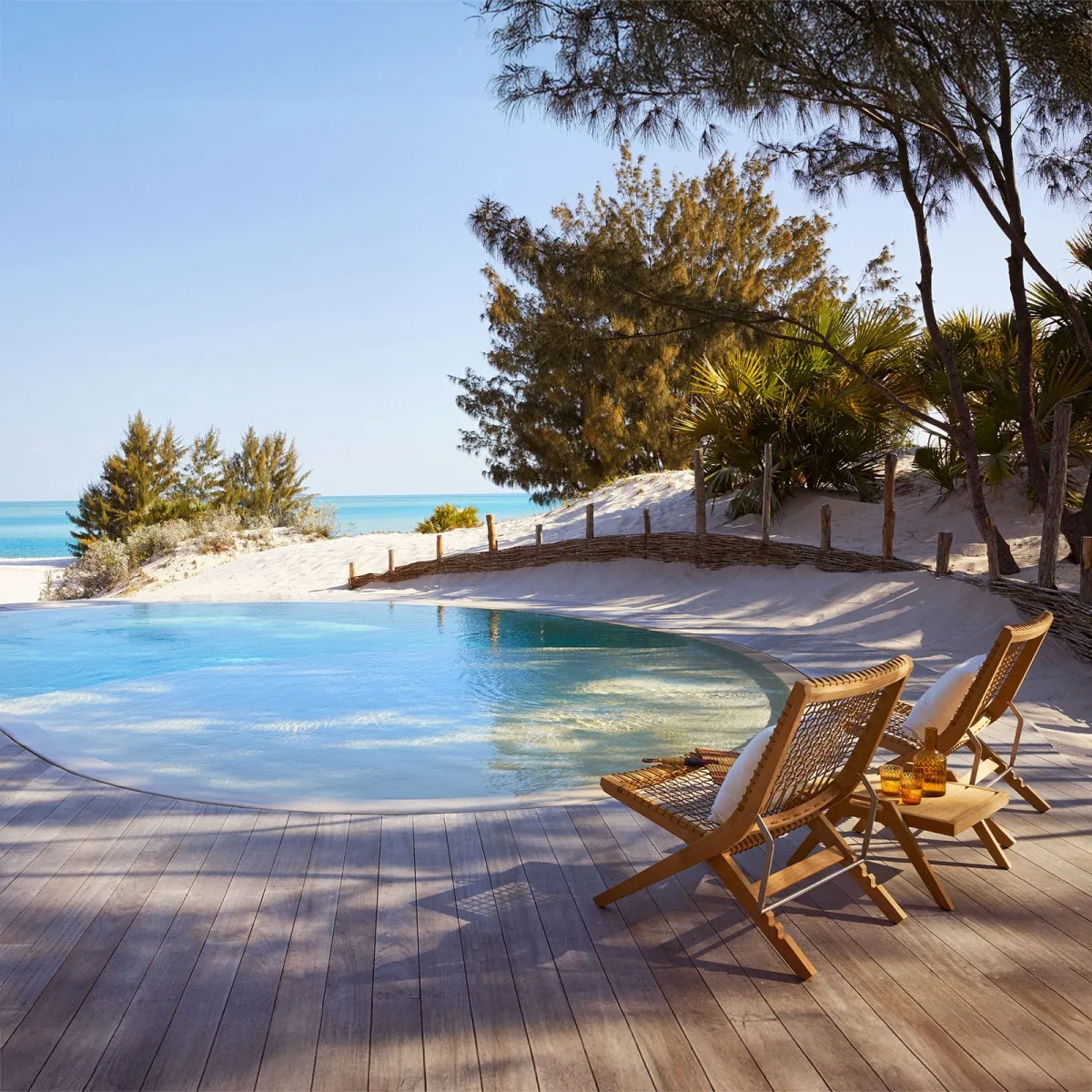 - Каждая резиденция располагает собственным частным пляжем, инфинити-бассейном и зоной отдыха на открытом воздухе.