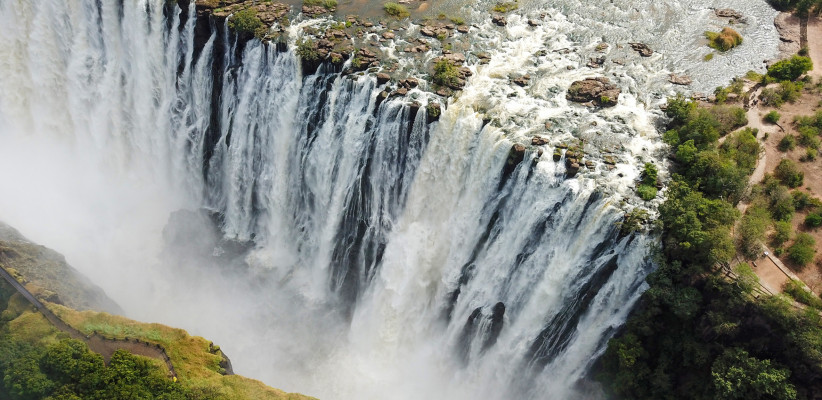 Задолго до того, как водопад был «открыт» европейцами, местные жители из племени батонга знали его как Моси-оа-Тунья – «Дым, который гремит». Этим громовым именем в 1855 году восхитился шотландский исследователь Дэвид Ливингстон, назвавший природное чудо в честь своей королевы Виктории. Расположенный на границе Замбии и Зимбабве, водопад входит в состав национального парка и является объектом Всемирного наследия ЮНЕСКО, а также одним из семи природных чудес света. Во время прогулки по тропинкам над каньоном туристы почувствуют на себе освежающие брызги «гремящего дыма» и под радужным сиянием услышите увлекательные истории гида.