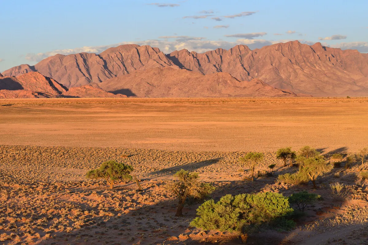 Мы отправляемся в сердце древней пустыни Намиб – к знаменитому Соссусфлею. Путь будет пролегать по причудливо извивающемуся руслу пересохшей реки Цаучаб, которое, словно песчаная змея, ведет нас сквозь царство величественных дюн к месту, где время застыло в уникальных пейзажах. Лишь раз в десятилетие, после обильных дождей, эта река наполняется, преображая пустыню в цветущий оазис, полный птиц. Первой точкой станет знаменитая Дюна 45, на вершине которой вас ждет панорама утренней пустыни. Далее путь лежит к сюрреалистичному «Мертвому болоту» (Дэд-Влей) – белому глиняному плато со скелетами древних деревьев, отрезанному от воды наступающими дюнами тысячи лет назад.