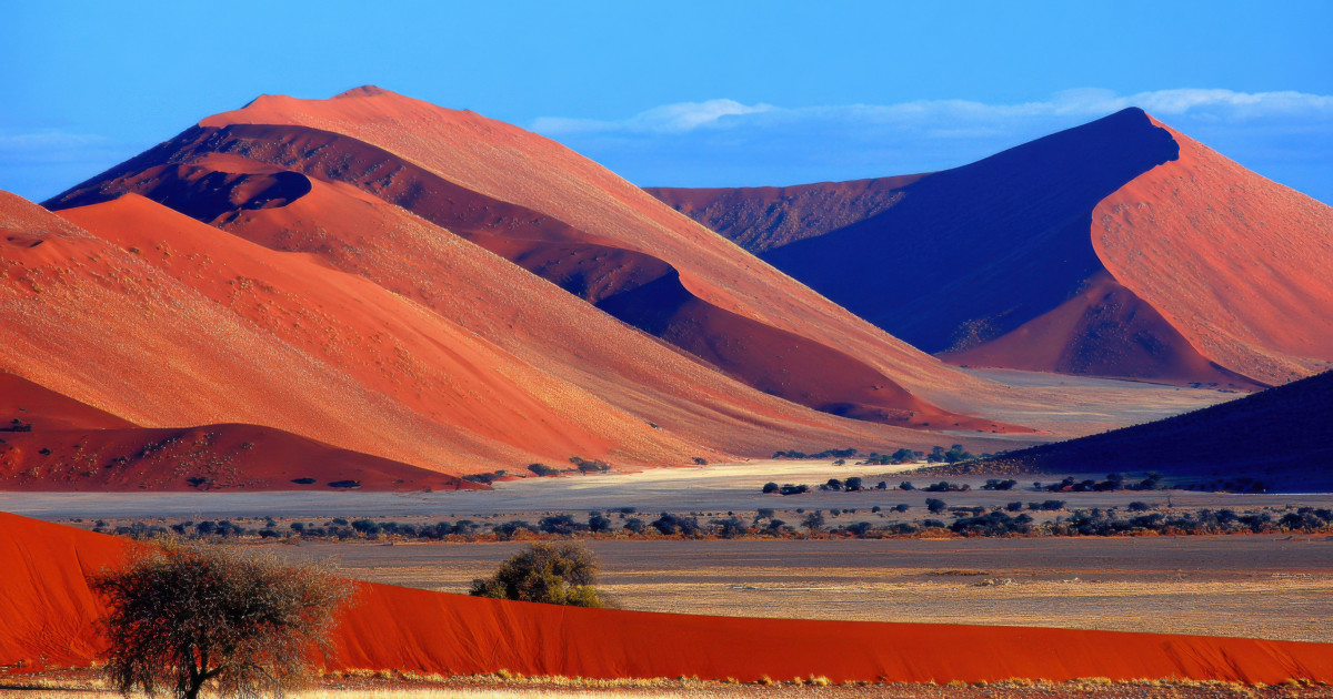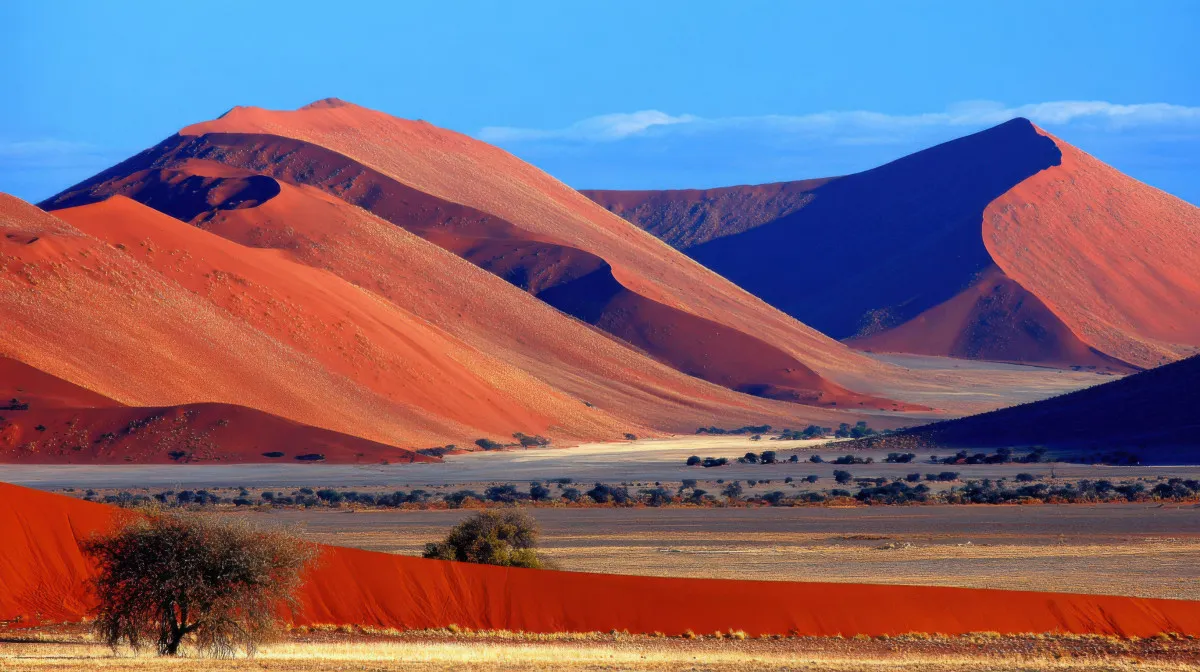 Туристы направятся в сердце пустыни Намиб – древнейшей на планете, чей возраст превышает 80 миллионов лет. Это царство гигантских песчаных волн, вздымающихся на высоту 350 метров и уходящих за горизонт. Здесь время застыло, а ландшафты поражают своим космическим масштабом.
