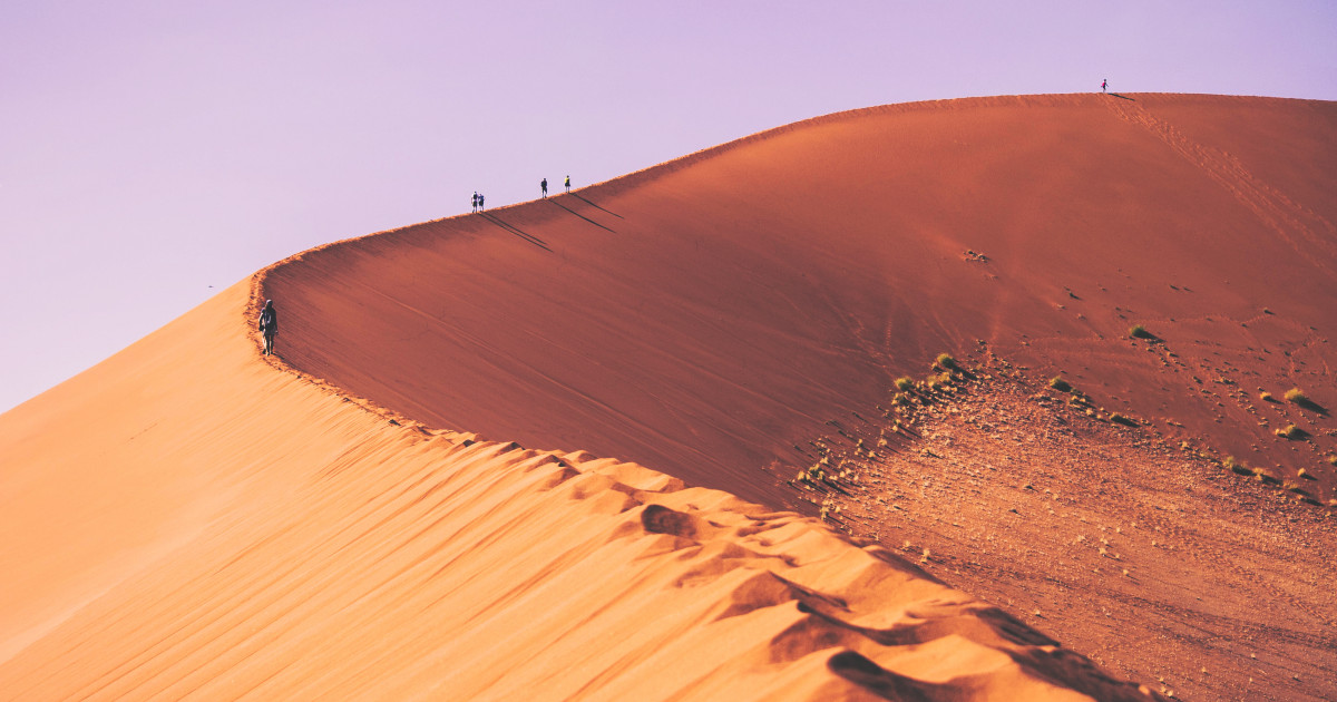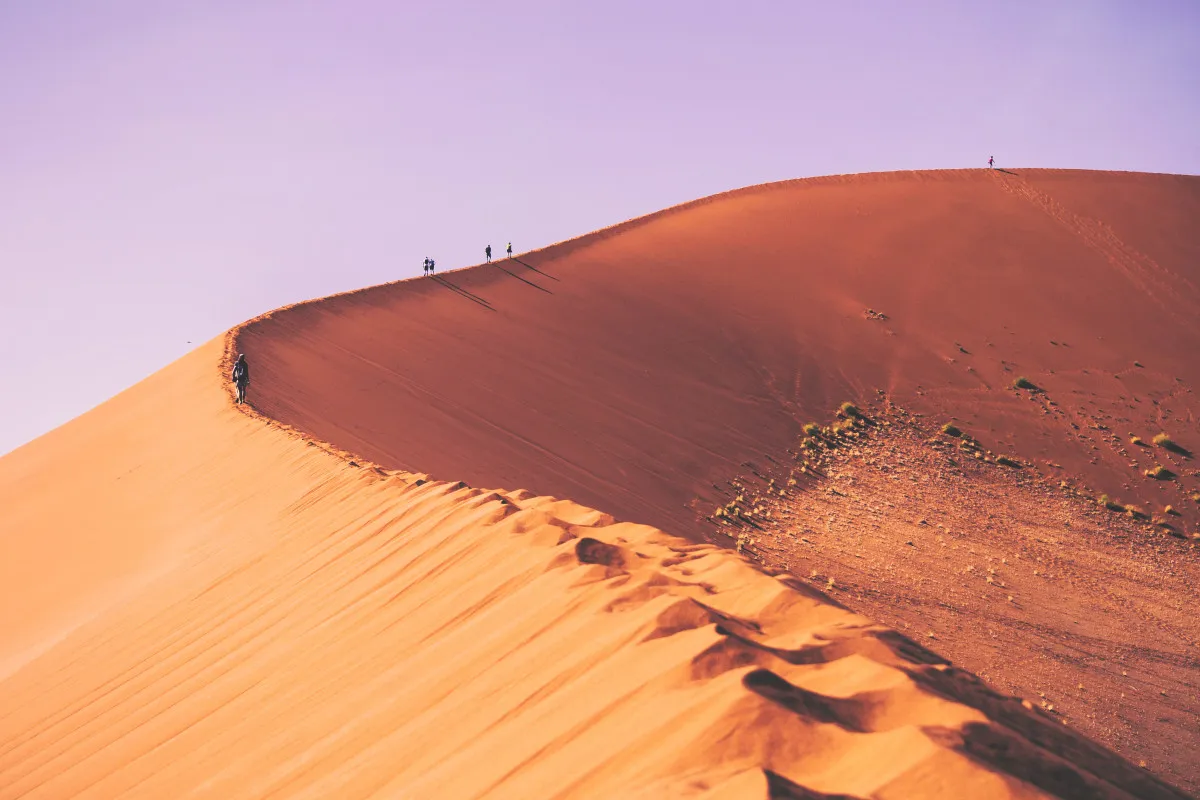 Туристы отправятся в сердце древней пустыни Намиб – к знаменитому Соссусфлею. Путь будет пролегать по причудливо извивающемуся руслу пересохшей реки Цаучаб, которое, словно песчаная змея, проведет туристов сквозь царство величественных дюн к месту, где время застыло в уникальных пейзажах. Лишь раз в десятилетие, после обильных дождей, эта река наполняется, преображая пустыню в цветущий оазис, полный птиц. Первой точкой станет знаменитая Дюна 45, на вершине которой туристов ждет панорама утренней пустыни. Далее путь лежит к сюрреалистичному «Мертвому болоту» (Дэд-Влей) – белому глиняному плато со скелетами древних деревьев, отрезанному от воды наступающими дюнами тысячи лет назад.