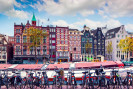 Амстердам — столица Нидерландов и крупнейший город страны, знаменит своей атмосферой либерализма, каналами и культурным наследием. Это город, где историческая архитектура, музеи мирового уровня и плотная городская ткань сочетаются с жизнью на воде: десятки каналов, домики на сваях и лодки вдоль улиц.