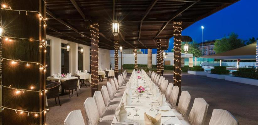 На территории отеля работает ресторан Al Falaj с интернациональной кухней, британский паб Lords Pub, лаунж Stassen Tea Lounge, спортивный лаунж Sports Lounge, японский ресторан Tokyo Taro, ночной клуб The Auto Bahn.