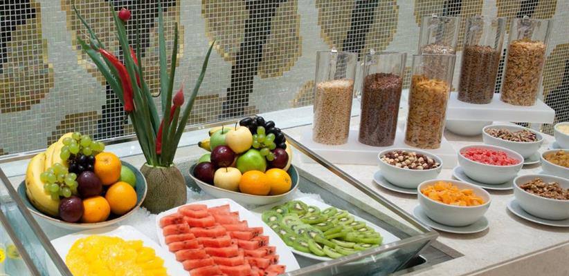 На территории отеля работают ресторан с Souq с блюдами интернациональной кухни, ресторан Al Safi Seafood, подают блюда из морепродуктов, есть спорт-бар, лобби-бар. Завтрак сервируют по системе «шведский стол».