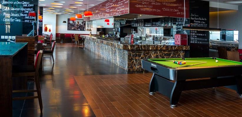 На территории отеля работают ресторан с интернациональной кухней, лаунж бар, лобби-бар. Завтрак сервируется по системе «шведский стол».