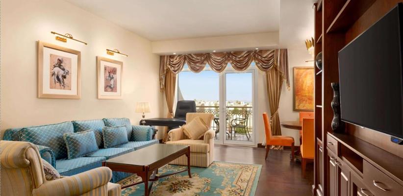 87 м2 с балконом и видом на море. В номере: кровать king-size, телевизор, диван, рабочий стол, обеденный стол, ванная комната с душем и биде.1 King Bed, Wyndham Garden Suite, Non-Smoking