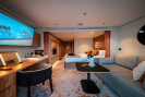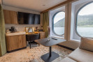 Описание: 47 м2, макс. 4 чел., 6 палуба, в кормовой части судна: двуспальная кровать размера king-size, гостиная оборудована большим голографическим камином с эффектом живого пламени, отдельные душ и ванна, просторная гардеробная, панорамный балкон на 12 м2.