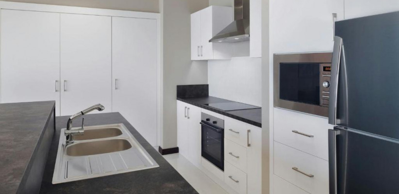 127 м2, номер с видом на город, двумя спальнями, одной кроватью king-size, двумя односпальными кроватями и двумя ванными комнатами. Максимальное количество гостей: 5.Three Bedroom Apartment King City View
