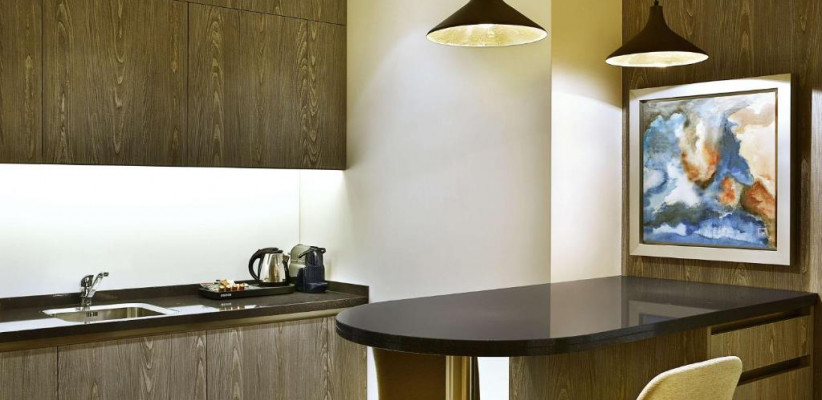 Архитектура отеля отражает стиль современной Дохи: лаконичные линии, просторные интерьеры и большие панорамные окна создают атмосферу света и уюта. В оформлении общественных зон сочетаются теплые природные оттенки и элементы современного арабского декора. На крыше расположен бассейн с видом на городской горизонт. Здесь же находятся сауна и фитнес-центр, оснащенный современными тренажерами и зоной для кардиотренировок.