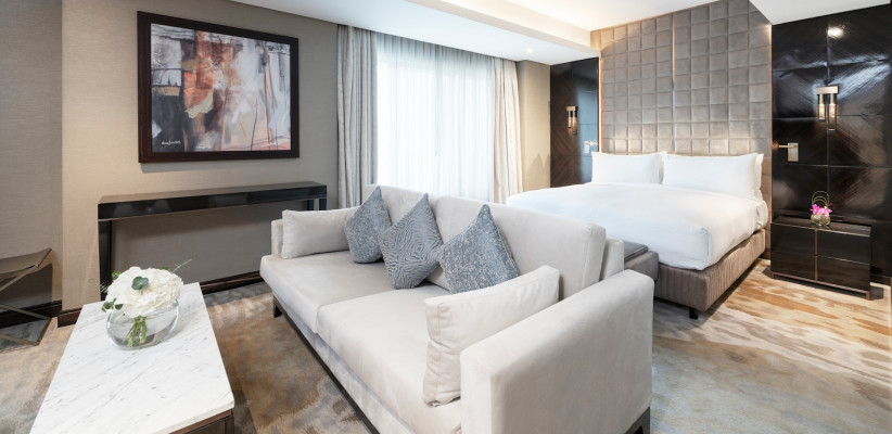 Отель представляет собой тридцатидевятиэтажное здание на берегу. Номерной фонд составляют 359 просторных номеров, люксов и резиденций с мини-кухней. Доступны смежные номера.Guest Room