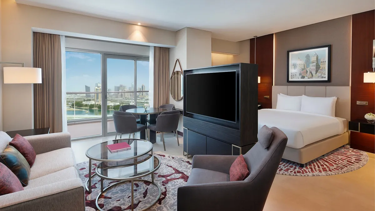 - Отель расположен в курортном районе Дохи, в окружении премиальных ресторанов и парков развлечений.