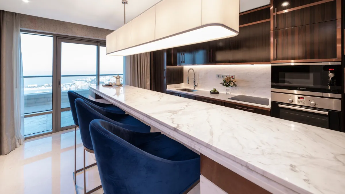 99 м2, балкон с видом на море или пристань либо широкие окна с частичным видом на море, высокие этажи, кровать king-size, гостиная, кухня с обеденной зоной. Максимальное количество гостей: 4.Deluxe Two Bedroom Suite