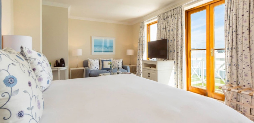 35-70 м2, с видом на сады отеля, просторная спальня с двуспальной кроватью размера king-size, гостиная зона. Максимальное количество гостей: 2.Luxury Double With Sea View