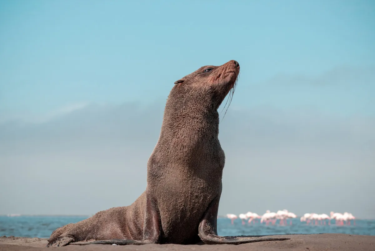 В порту Уолфиш-Бей туристов ждёт встреча с древнейшей пустыней планеты – Намиб. Её песчаные барханы, словно волны, накатывают на океан, а лагуны окрашиваются в розовый цвет тысячами фламинго.