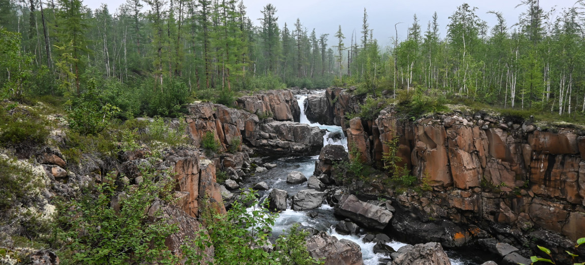 Плато Путорана – сильно расчлененный горный массив, расположенный на северо-западе Среднесибирского плоскогорья. На севере и западе плато обрывается крутым уступом – 800 и более метров, в то время как южная и восточная части характеризуются пологими склонами. Максимальная высота плато – 1701 м, среди высочайших вершин – горы Камень (1701 м), Холокит (1542 м), Котуйская (1510 м). На севере плато Путорана граничит с Таймыром.