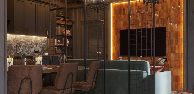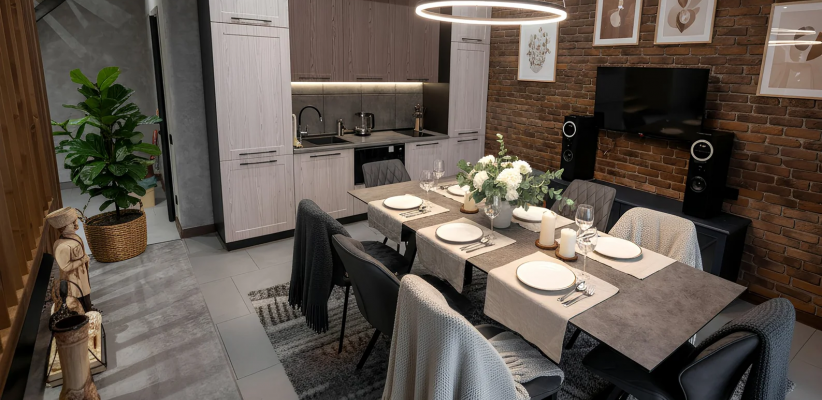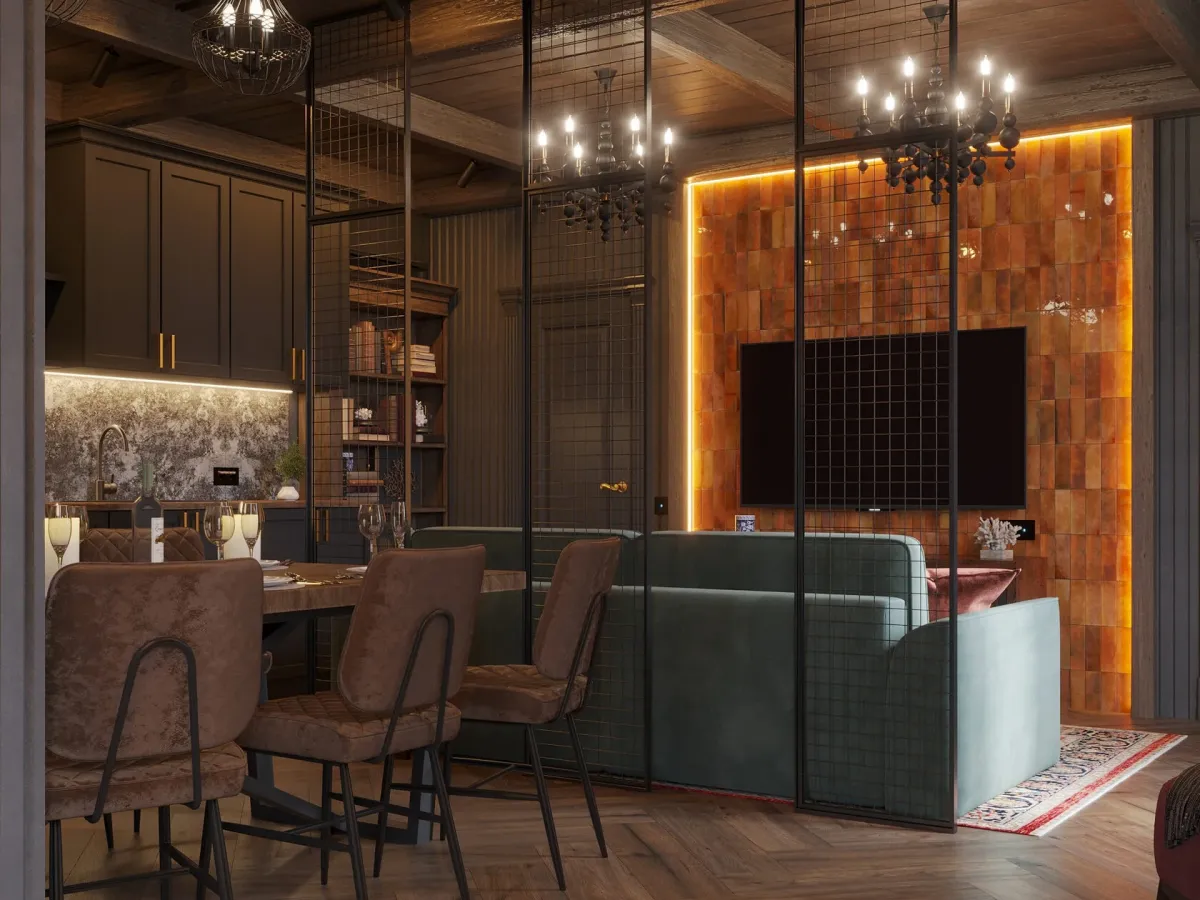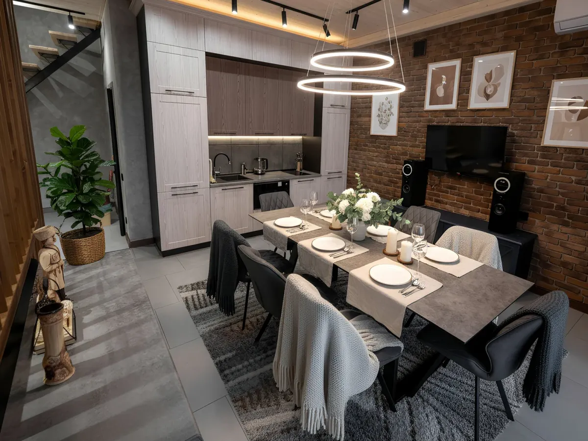 120 м2, 2 изолированные комнаты, 2 кровати (160×200 см), раскладной диван, кухня-столовая, гостиная зона и терраса. Во внутреннем дворе установлены зоны отдыха и мангал. Количество гостей: до 8Пентхаус