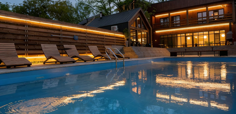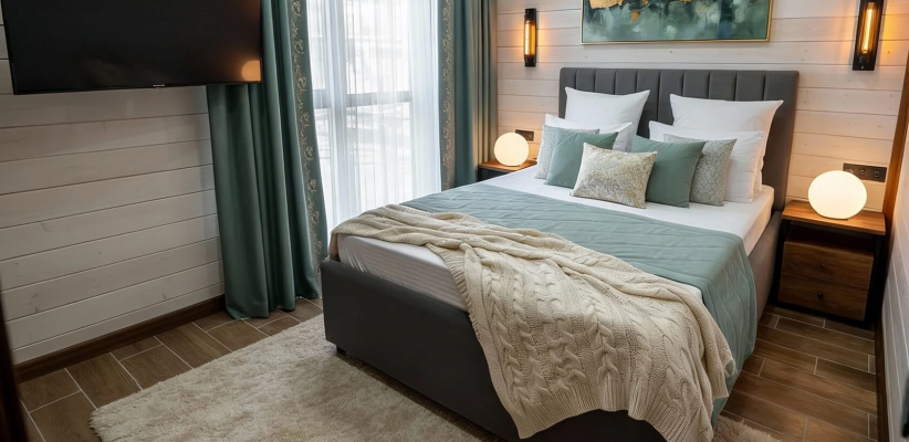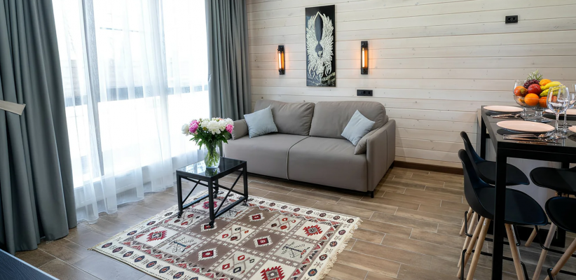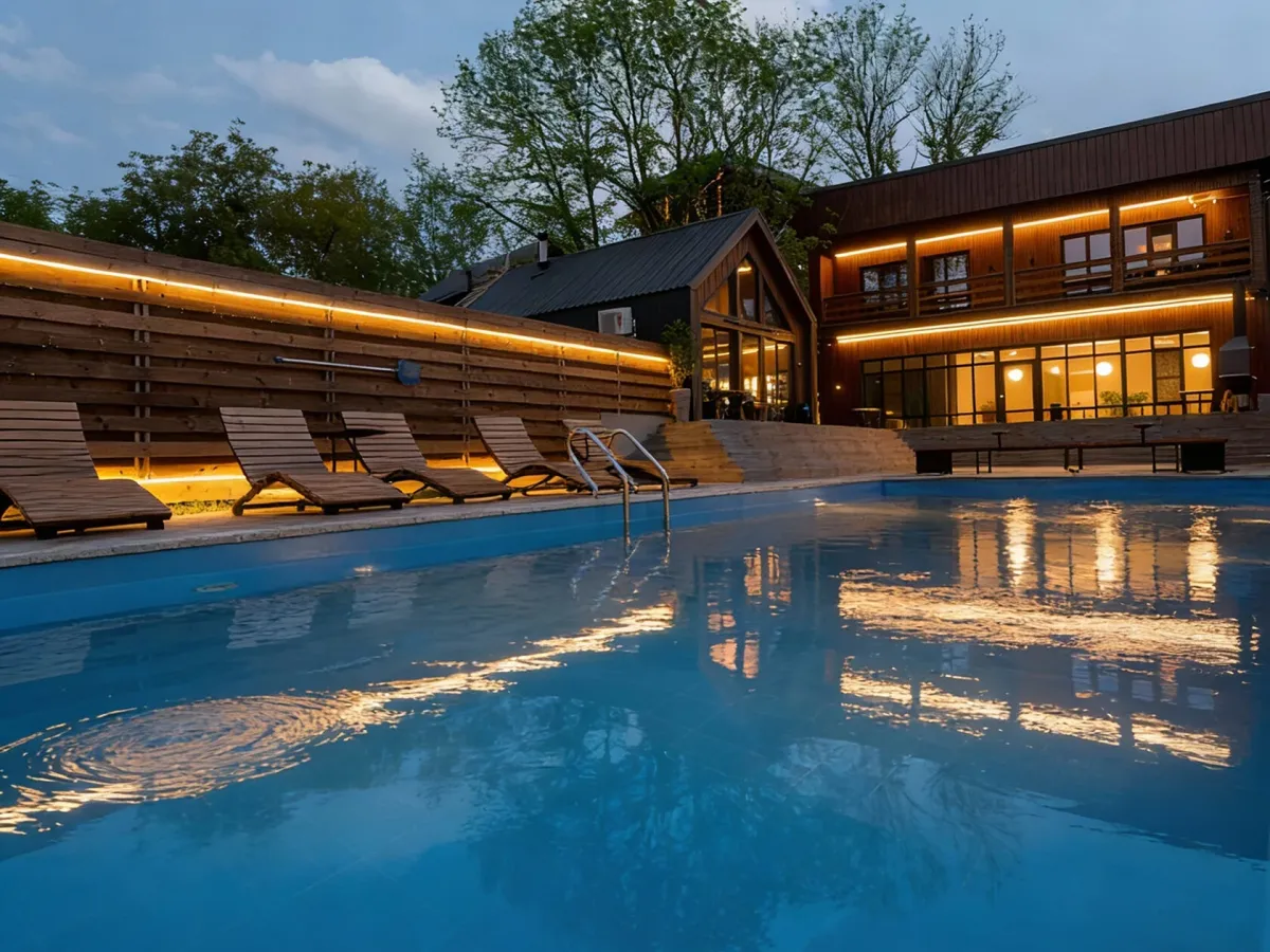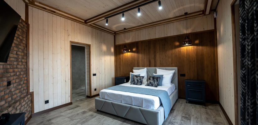 Несмотря на природное окружение, отель удобно расположен: дорога до автовокзала занимает около пяти минут, а до центра города можно добраться всего за пятнадцать. Для размещения предлагаются различные варианты — от уютных номеров до отдельных домов и просторного двухэтажного коттеджа.