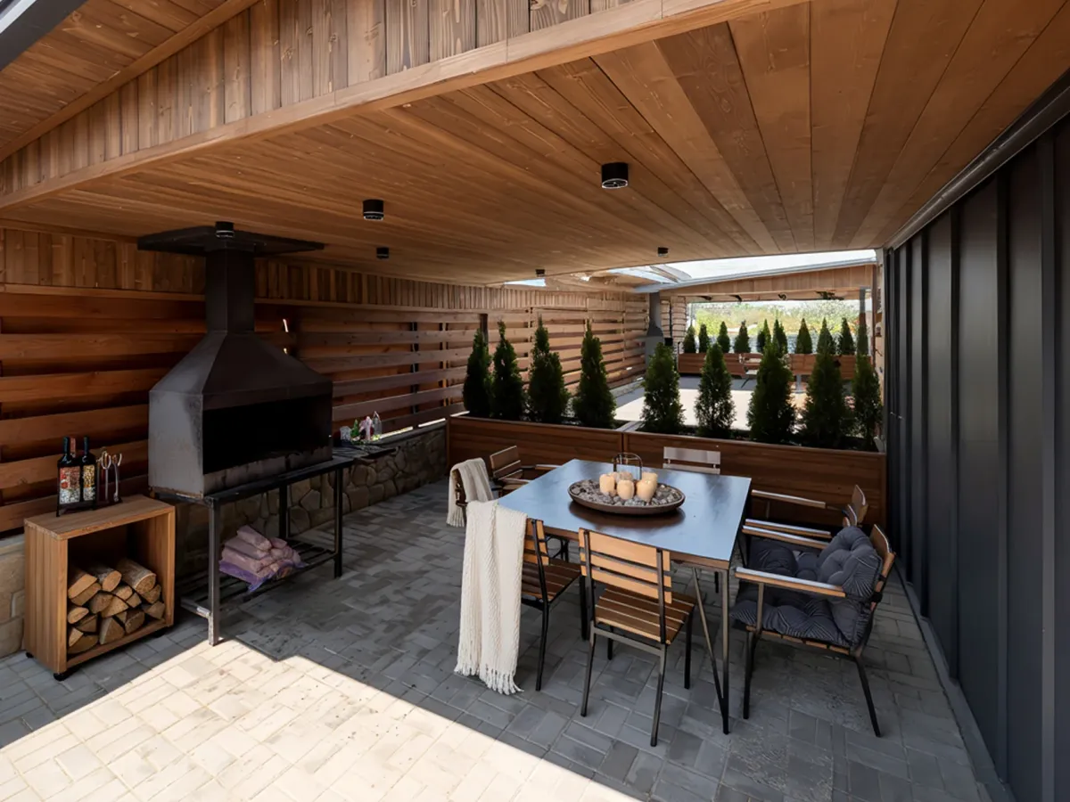 40 м2, кровать (160×200 см), раскладной диван, кухня, собственный дворик с мангалом под навесом. Количество гостей: до 4Коттедж VIP 4 с баней