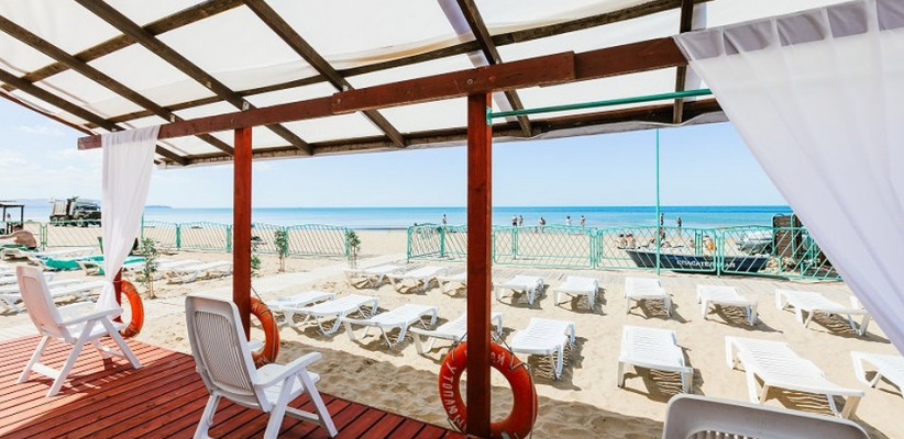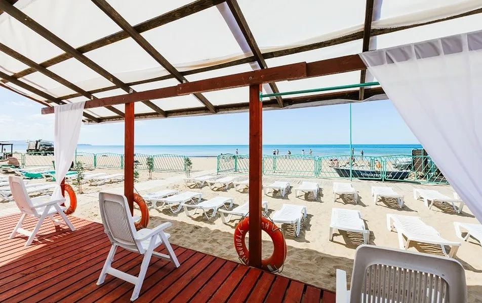 Собственный, оборудованный пляж с душевыми, раздевалками, лежаками и навесами. На берегу есть кафе, туалет, медицинский и спасательный посты.