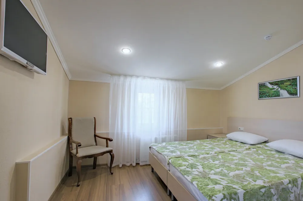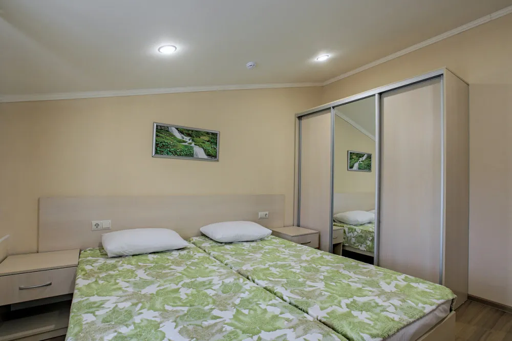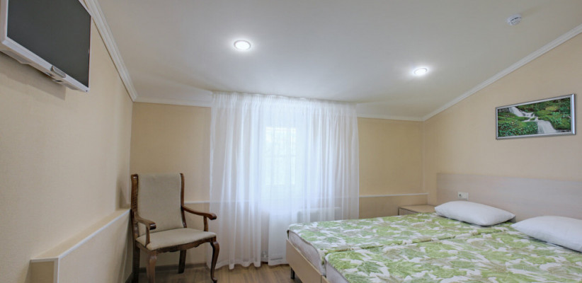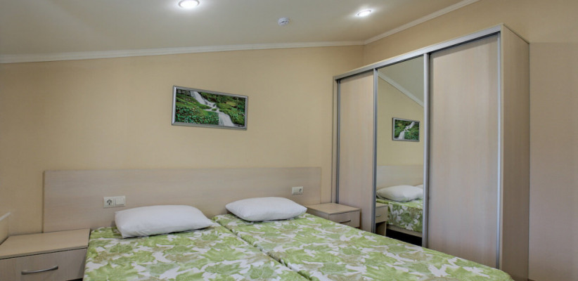 35-45 м2, большая кровать, дополнительные спальные места на мягком раскладном диване или кресле. Количество гостей: до 5Стандарт 2-местный улучшенный без балкона