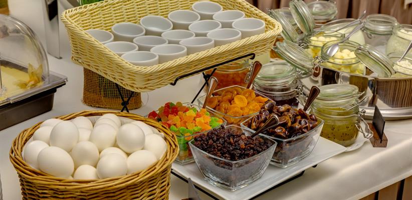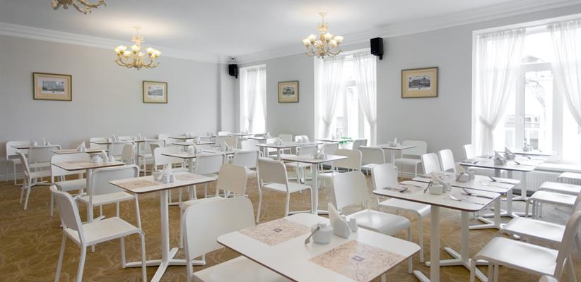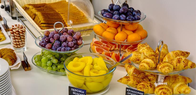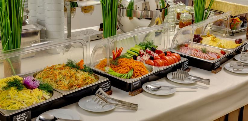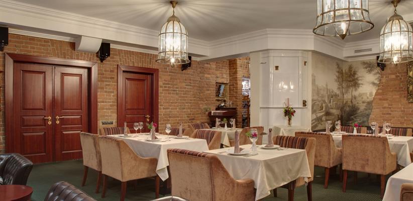 Ресторан русско-европейской кухни работает круглосуточно. Утром сервируются завтраки в формате «шведского стола». Возможна организация банкетов и фуршетов.