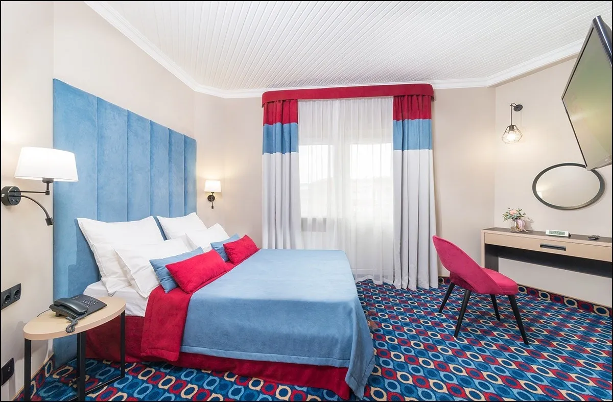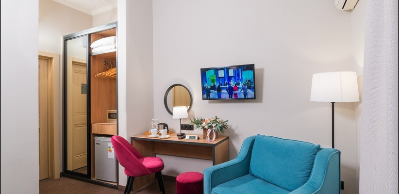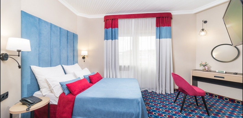 22 м2, с видом на центральную пешеходную улицу, двуспальная кровать или две односпальные, доп. место. Количество гостей: 3Трехместный стандарт