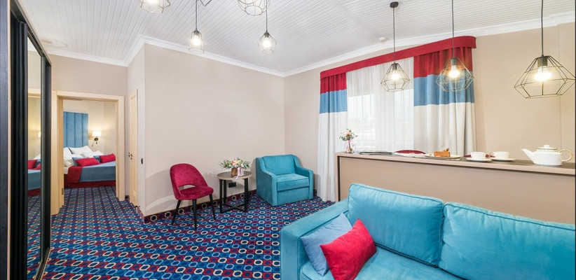 40 м2, спальня, гостиная, двуспальная кровать, диван-кровать. Количество гостей: 4Люкс семейный