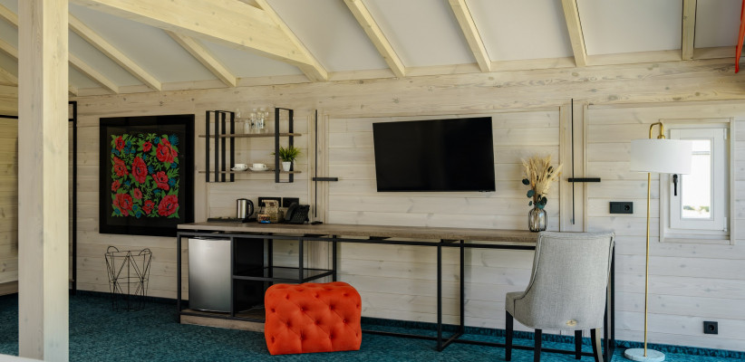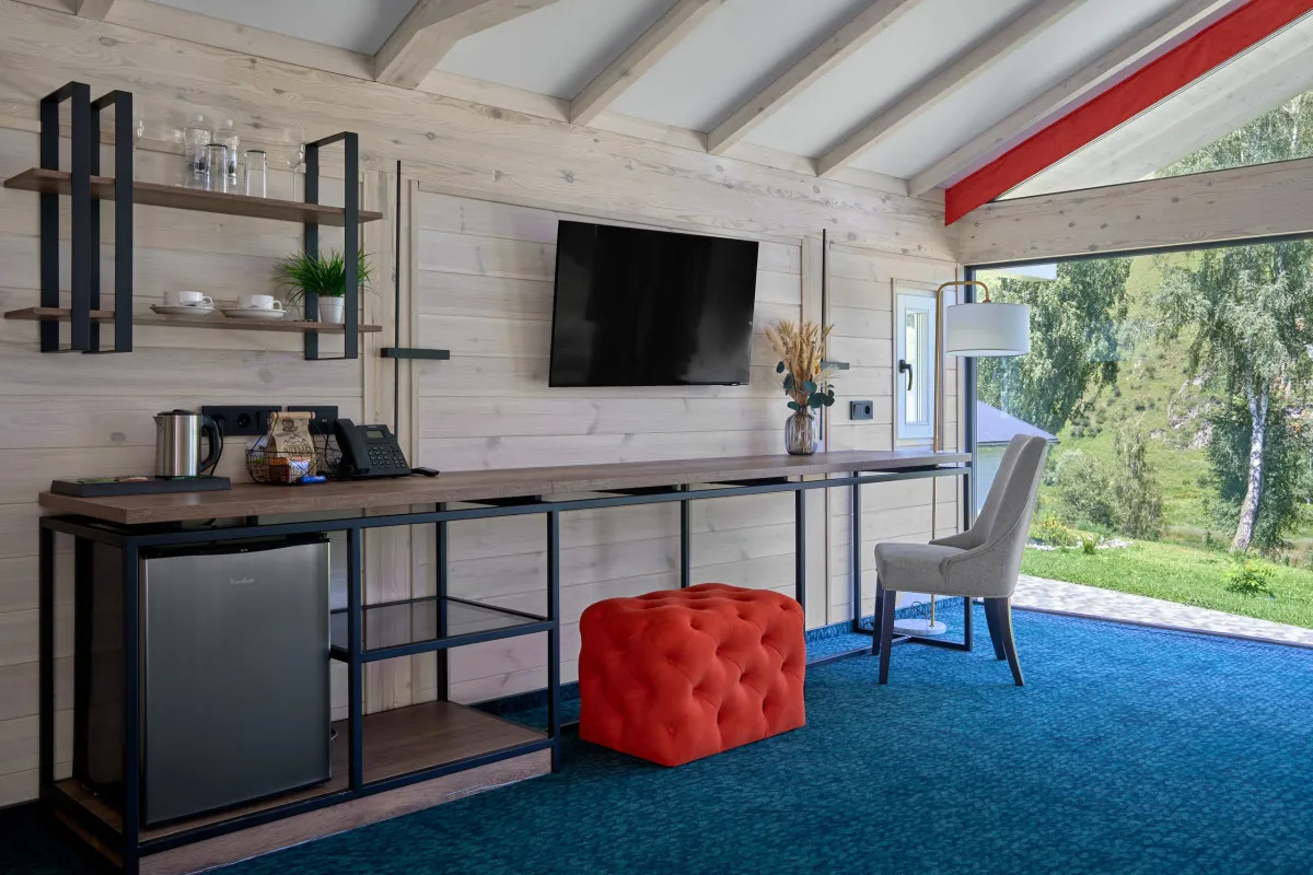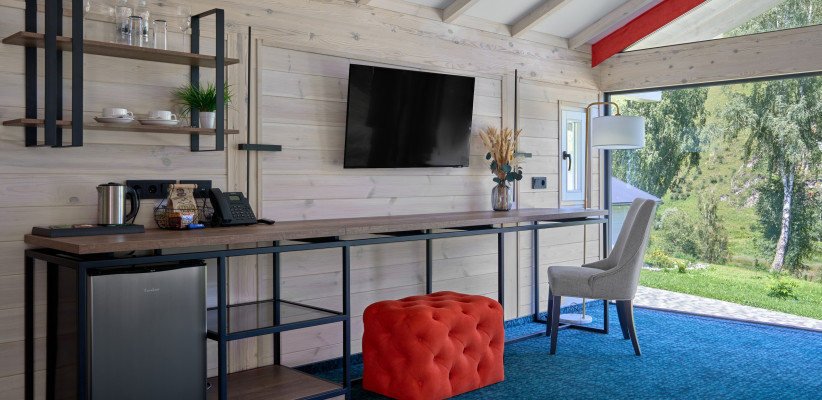 35 м2, двуспальная кровать, панорамный вид на парк маралов и горы Алтая. Количество гостей: 2 + 1 доп. местоВилла Полулюкс