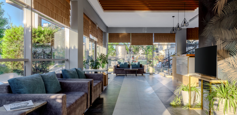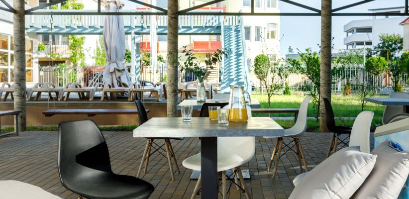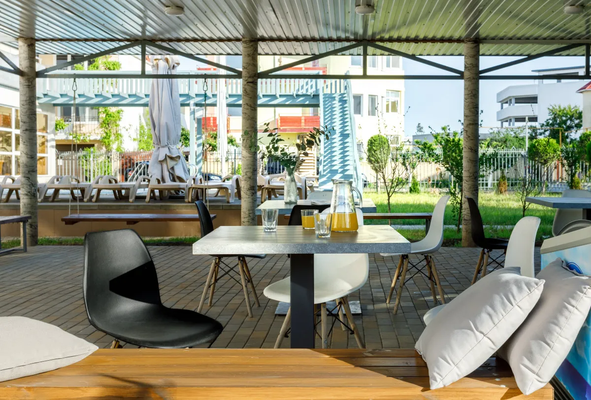 Отель Ambra расположен в районе пляжного поселка Джемете. Поселок Джемете славится своим мягким климатом, лечебными пляжами, песчаными дюнами и чистым морем. Отель состоит из четырехэтажного корпуса с лифтом.