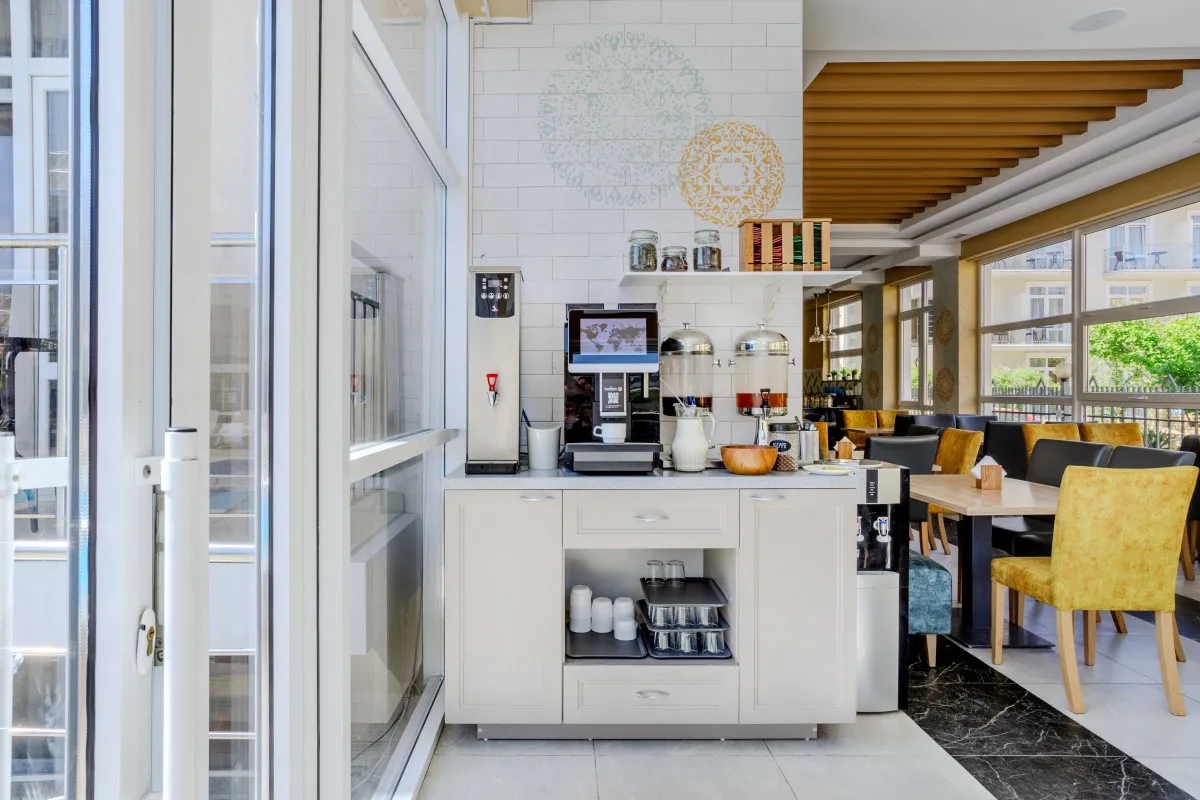 В баре по системе «Все включено» гостям отеля Ambra All inclusive Resort Hotel доступны алкогольные напитки кубанских производителей: пиво, вино, водка, прохладительные безалкогольные напитки, а также чай, кофе (с 10:00 до 22:00).