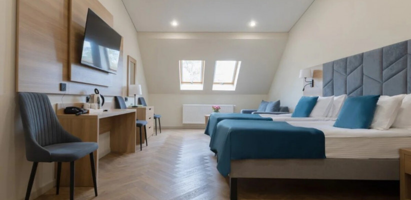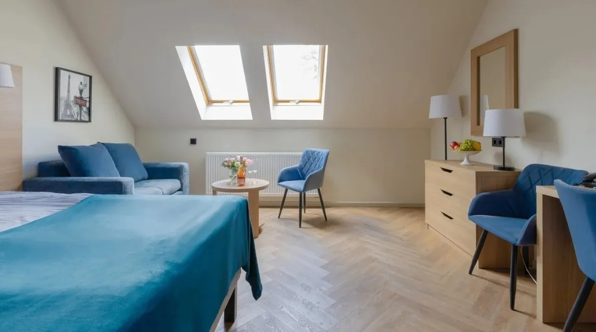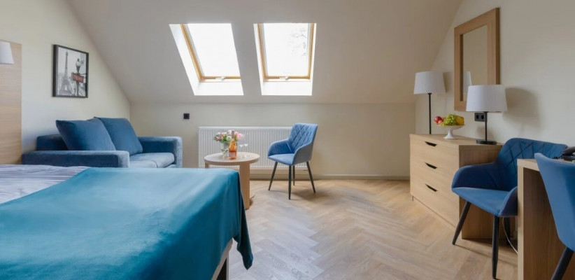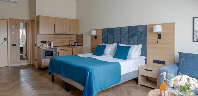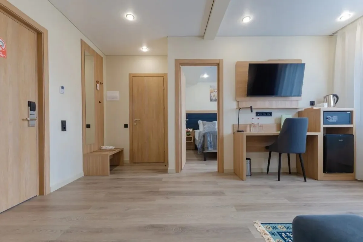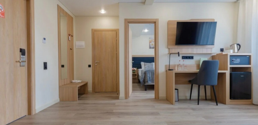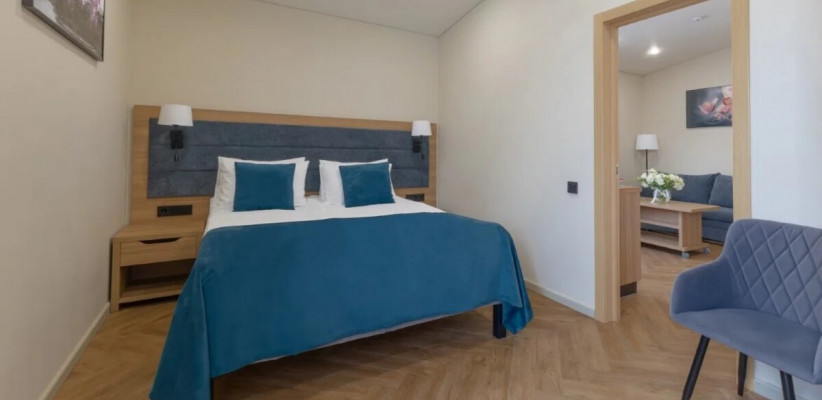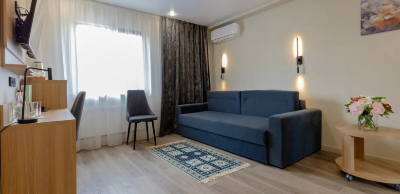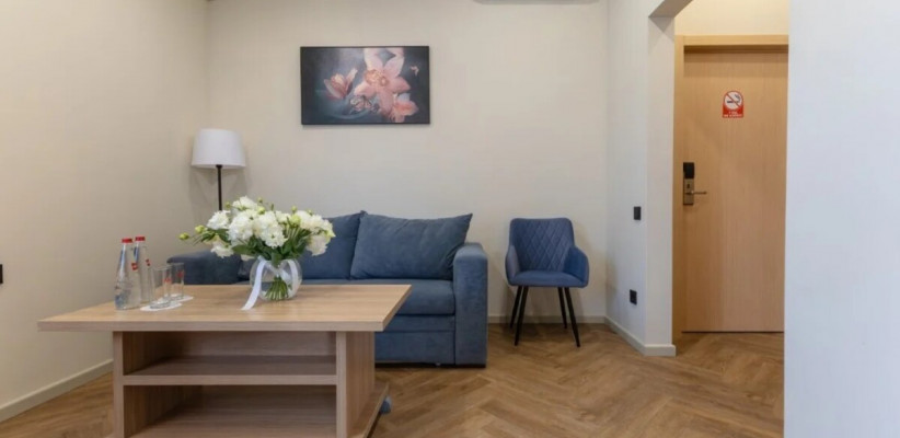 33 м2, две односпальные или двуспальная кровать, диван, рабочая зона. Количество гостей: 3.Апартаменты Люкс