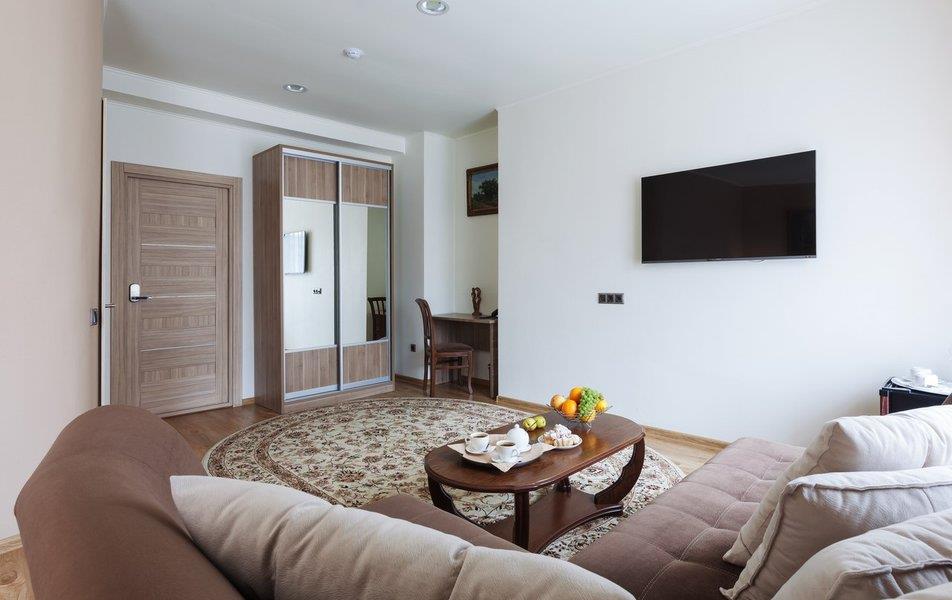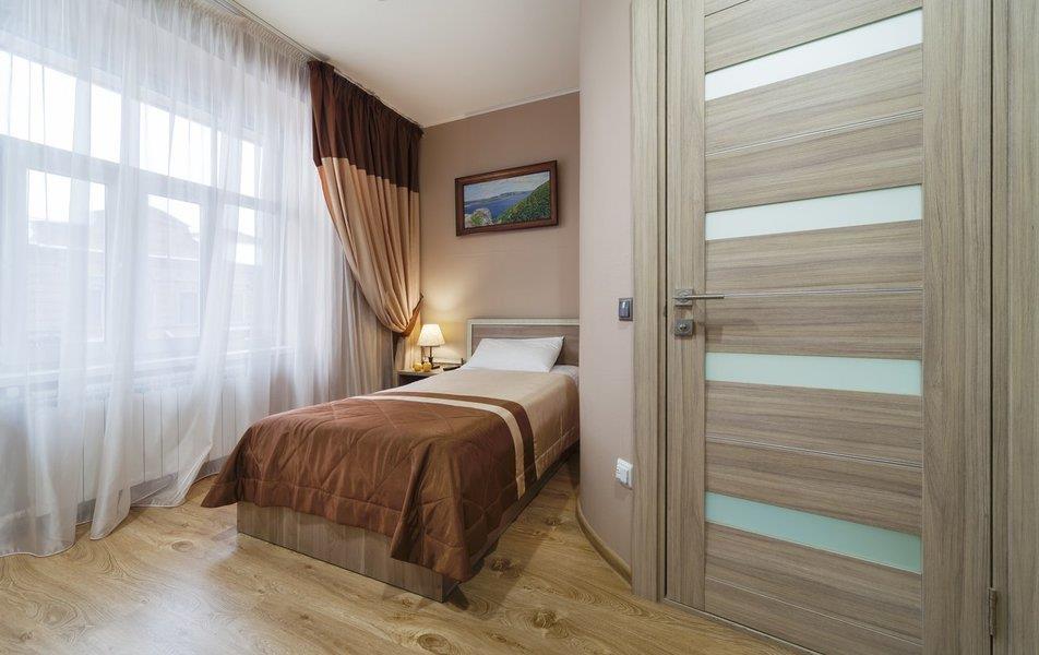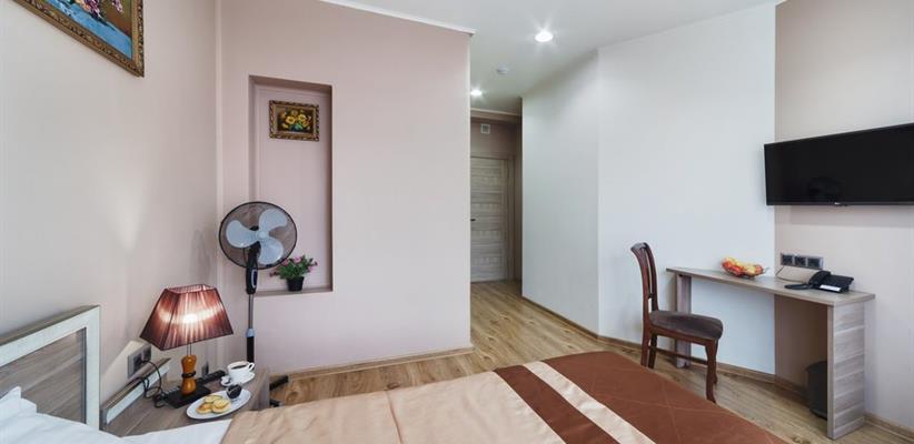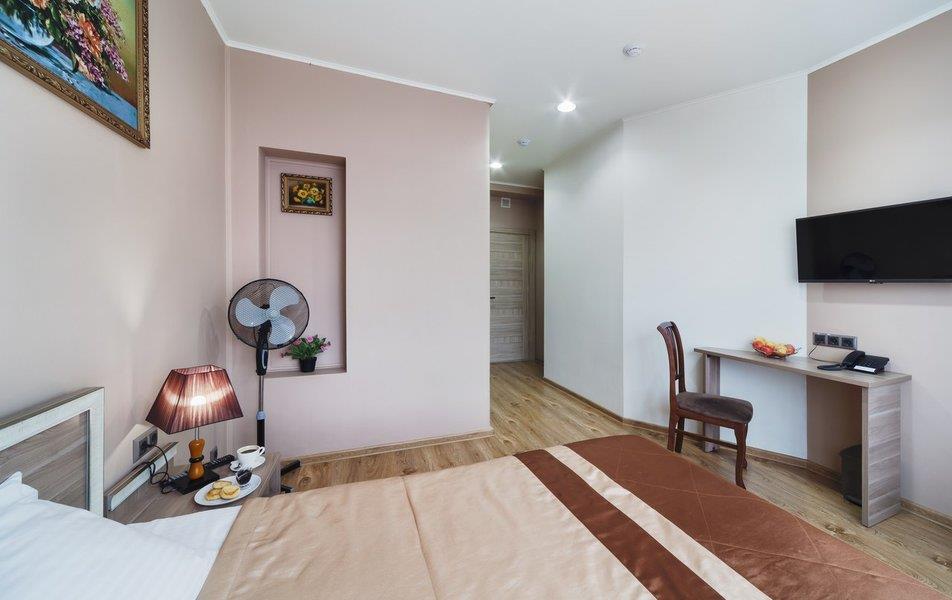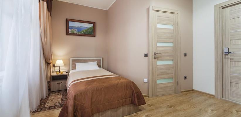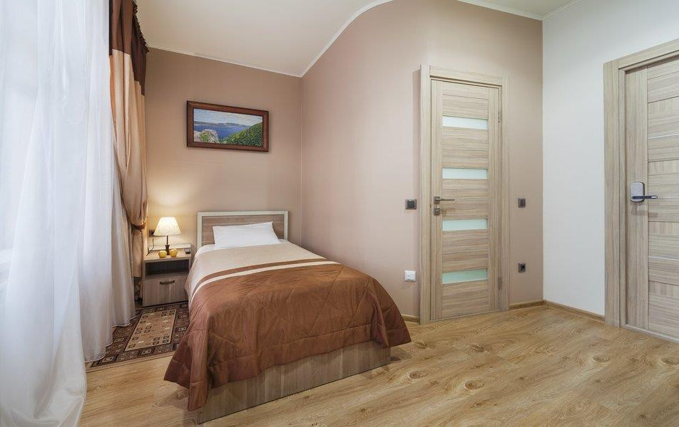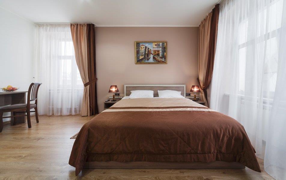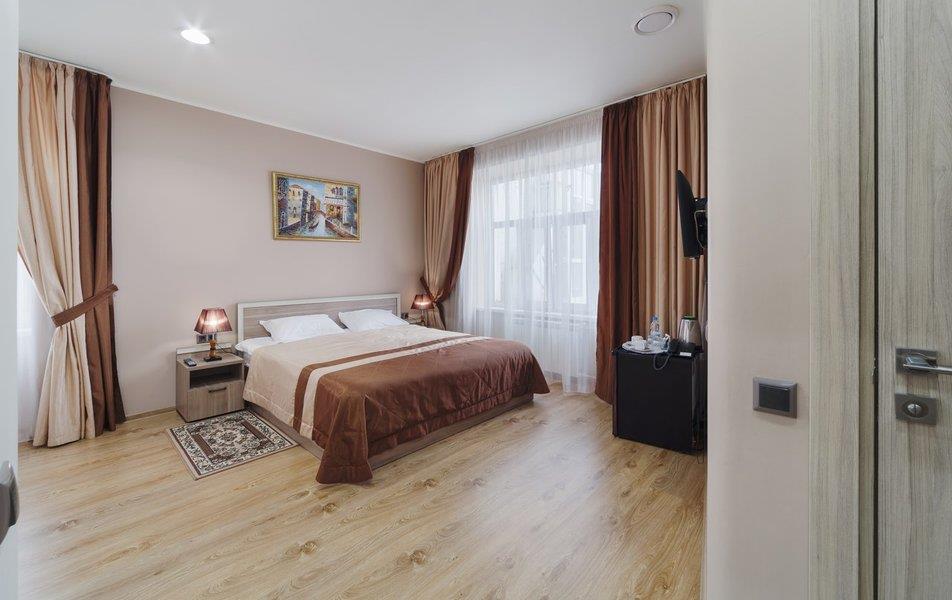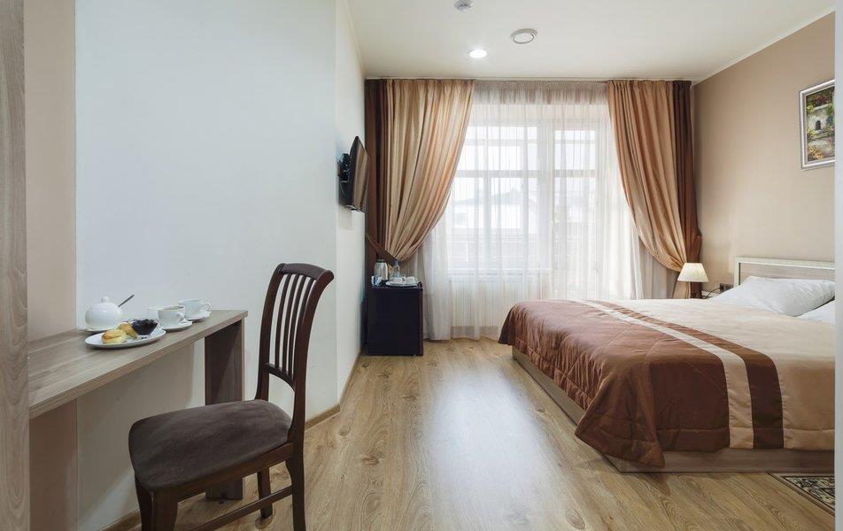 Гостиница «Арбат» расположена на пешеходной улице в самом сердце Екатеринбурга. В шаговой доступности находятся все туристические точки города: дендропарк, цирк, театр оперы и балета, несколько крупных торговых центров, многочисленные музеи. Отель располагается в пятиэтажном доме и оборудован отдельным входом. Жилой фонд включает 25 номеров с классическими интерьерами. Все комнаты оформлены в сдержанной кофейно-бежевой гамме, оснащены удобными кроватями, современной мебелью и техникой, индивидуальной ванной. Премиальные категории дополнены диваном и балконом. В гостинице работает кафе, где по утрам гостям подают завтраки. Есть возможность организовать массовое торжество. Постояльцам доступны услуги прачечной. На всей территории предусмотрено подключение к Wi-Fi. У корпуса обустроена собственная автостоянка с видеонаблюдением. Завтрак – Парковка Рестораны и бары: кафе Бытовые службы: глажка, стирка, химчистка Заказ: такси, трансферов, цветов, экскурсий Интернет: wi-fi в номерах На стойке регистрации: утреннее пробуждение по телефону Прокат: бытового инвентаря, утюг: гладильная доска Как добраться: Самолётом до аэропорта Кольцово (г. Екатеринбург), далее на автобусе №66,65,79 до остановки «Улица Академика Шварца», далее на метро до станции «Площадь 1905 года», далее 460 м до отеля. Поездом до ж/д вокзала г. Екатеринбург, далее 420 м до станции «Уральская», далее на метро до станции «Площадь 1905 года», далее 460 м до отеля. Рекомендуем заказывать трансфер.