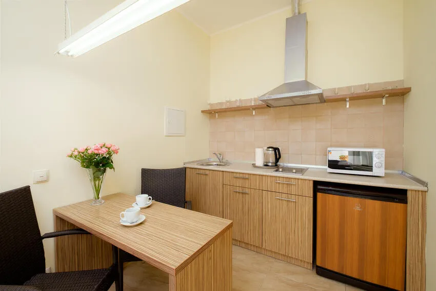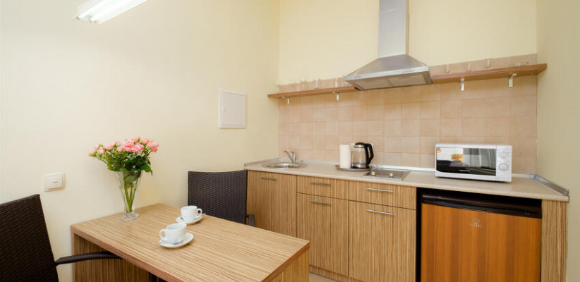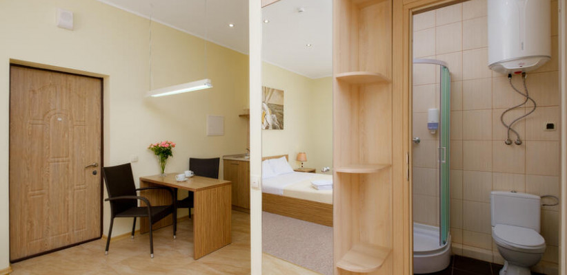 29 м2, балкон с видом на внутренний парк или окрестности, спальня с двуспальной кроватью, кресло, оборудованная кухня, рабочее место.Улучшенная студия