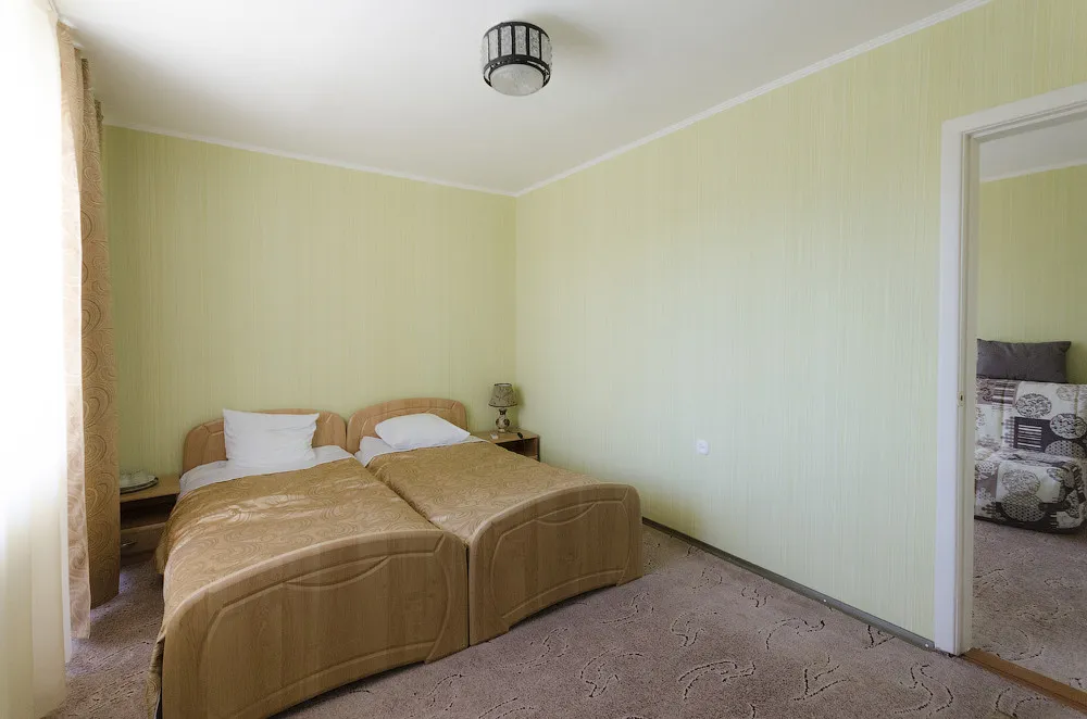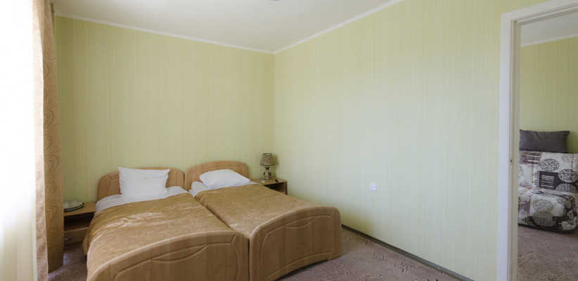 17 м2, три односпальные кровати, в некоторых есть балкон. Количество гостей: 3 + 1 доп. место (евро-раскладушка)2-х местный 2-х комнатный номер