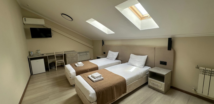 19 м2, двуспальная кровать, детская кроватка (по запросу). Количество гостей: 2Мансарда Twin (стандарт с двумя раздельными кроватями)