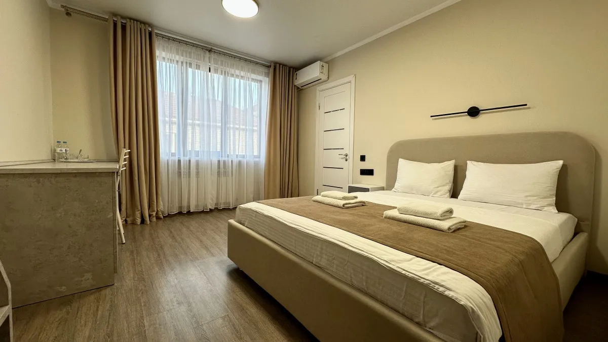 26 м2, разделяемая двуспальная кровать, доп. место. Количество гостей: 3Просторная студия с отдельной кухней