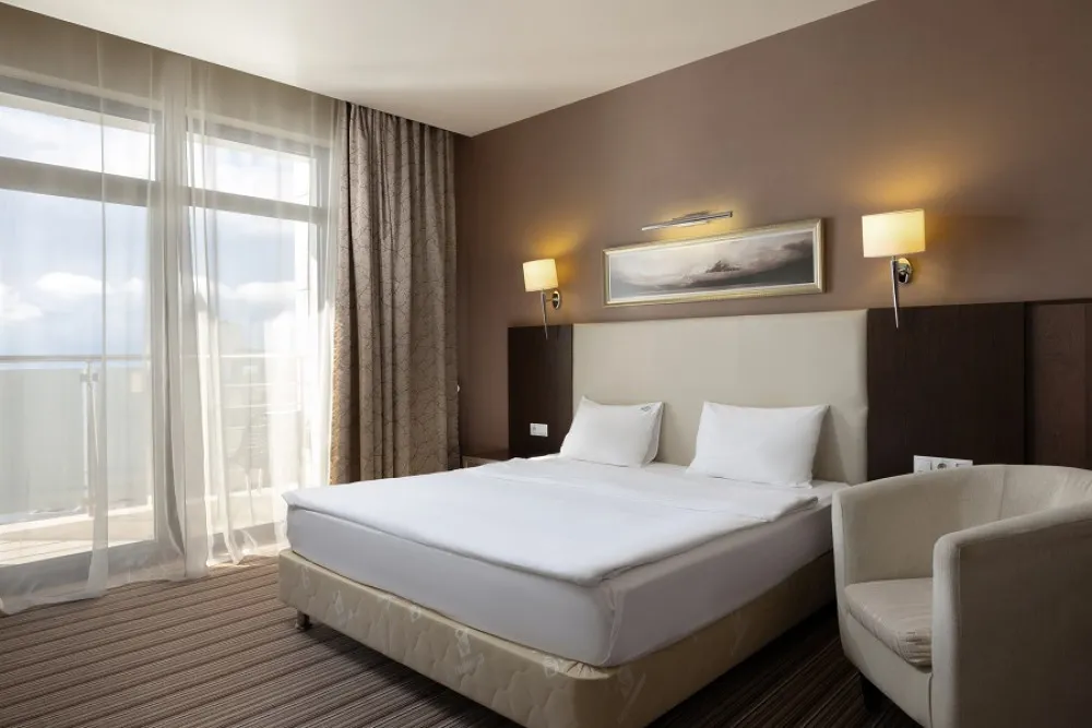 23 м2, вид на море, номер с одной большой или двумя раздельными кроватями, оборудованными ортопедическими матрасами, балкон. Количество гостей: до 3Стандарт 2-местный с раздельными кроватями (Арена)