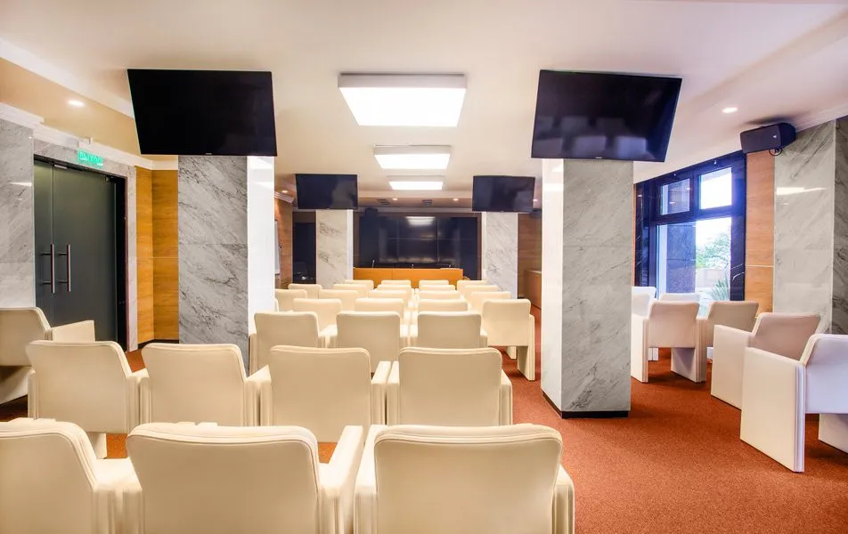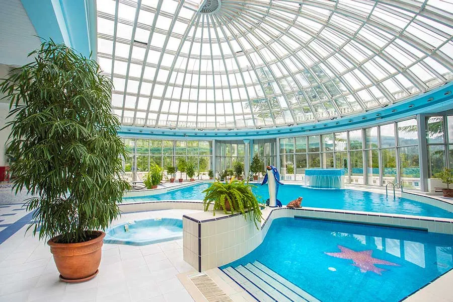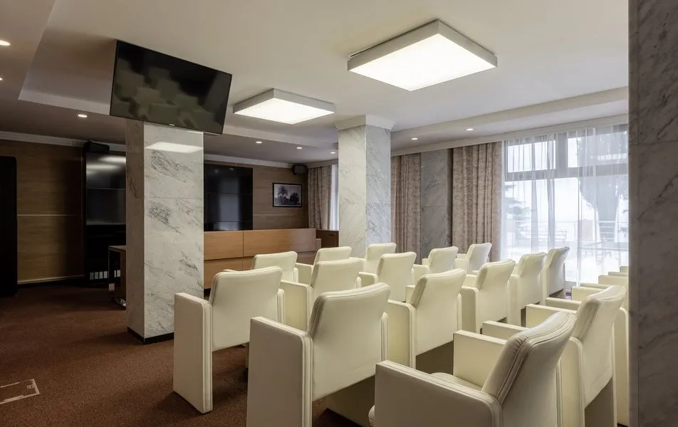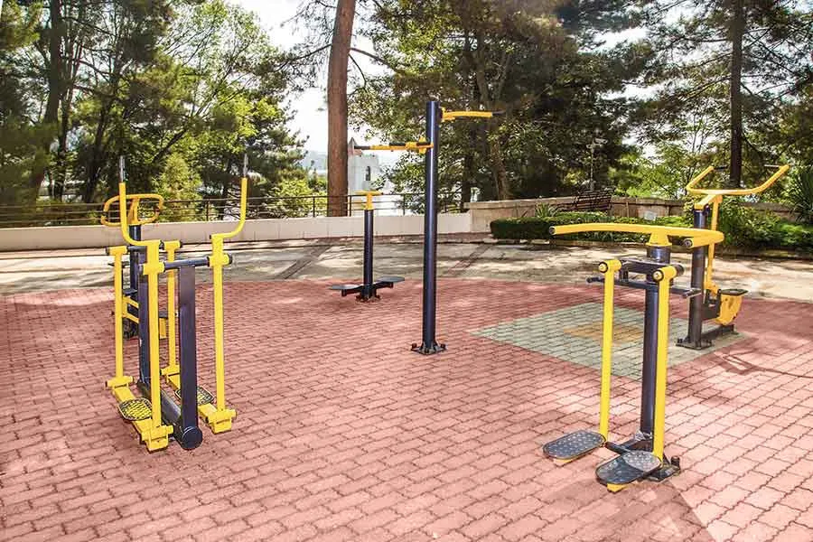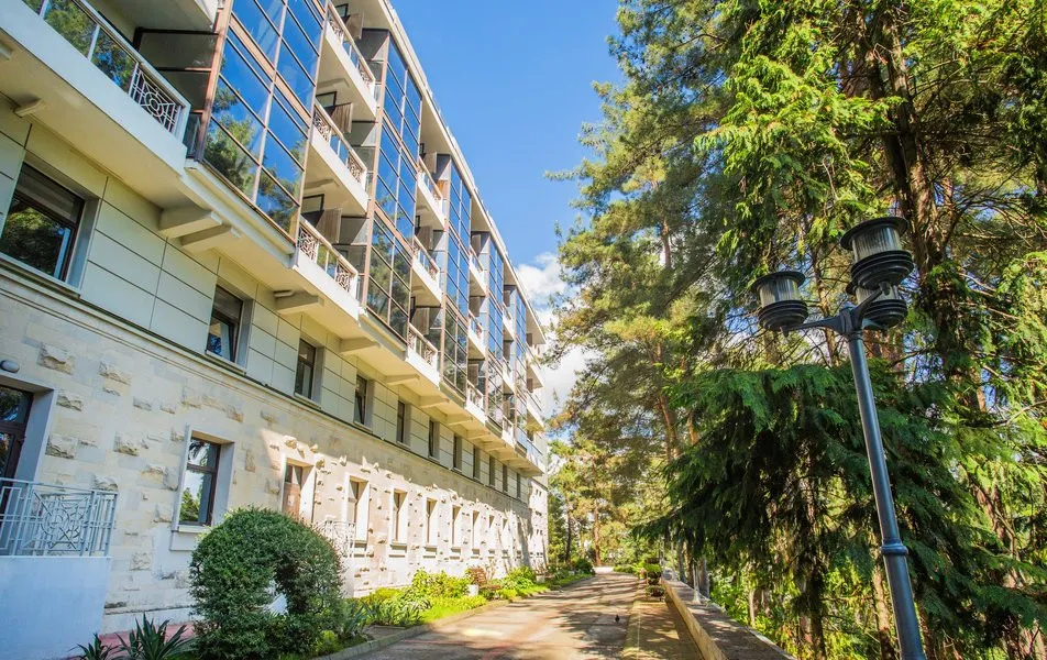 Между основной территорией и корпусом «Арена» регулярно курсирует автобус санатория. Всего пять минут и гости корпуса «Арена» попадают на основную территорию с развитой инфраструктурой – крытый бассейн с водопадом, противотоками и детской зоной, спортивно-оздоровительный центр с видом на море, с кардио и силовыми тренажерами, маршруты для прогулок и терренкура.