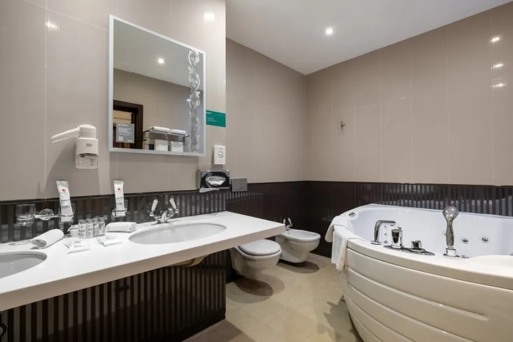 64 м2, вид на море и парк, две отдельные спальни, гостиная, полностью оборудованная кухня, гостевой узел, ванная комната с джакузи, балкон. Количество гостей: до 5
