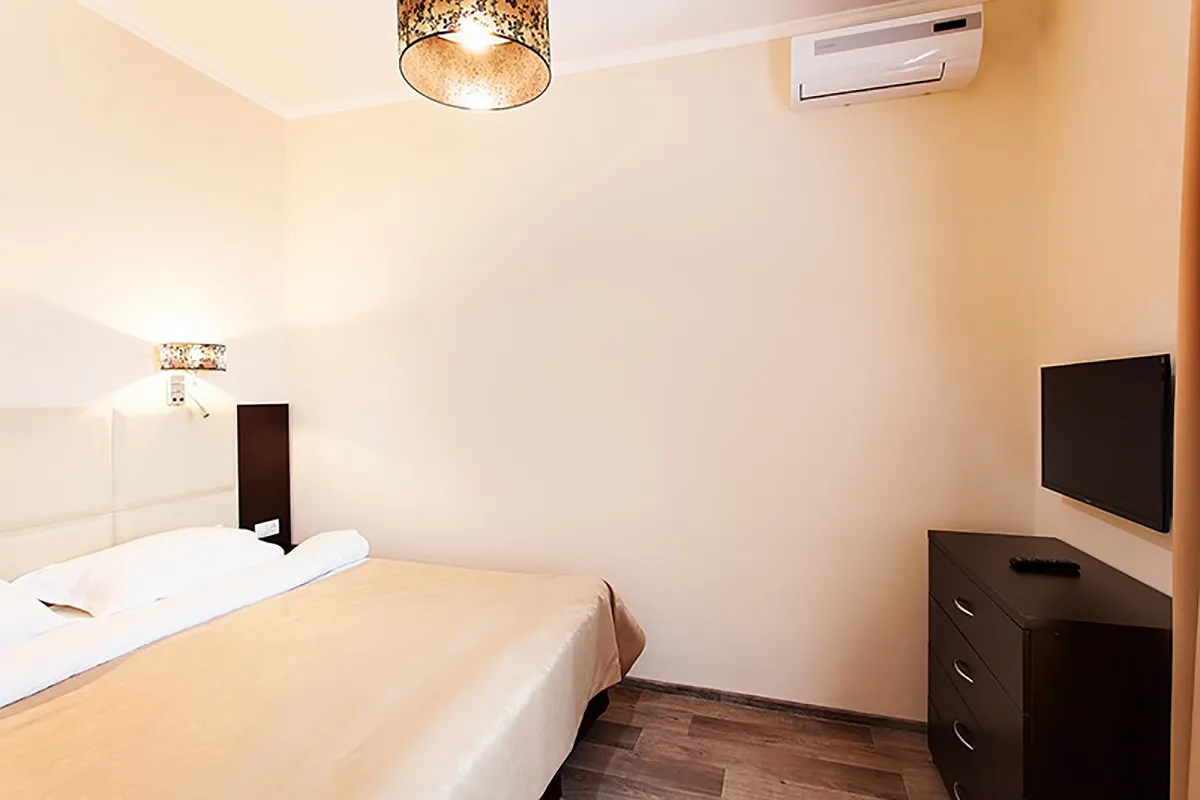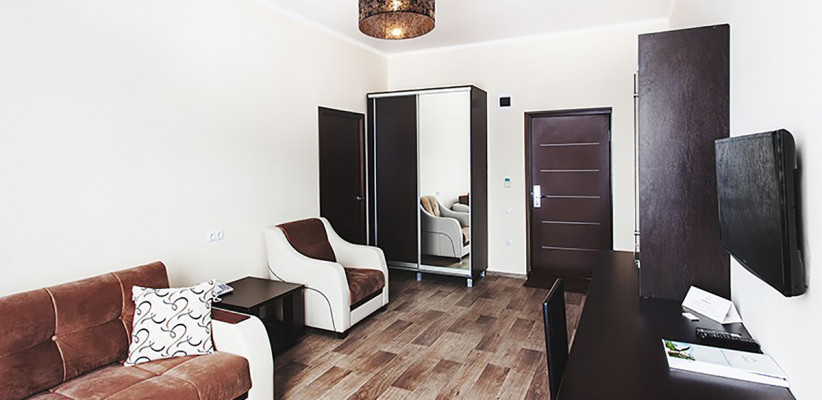 Для размещения предлагаются номера категории «стандарт+» и номера повышенной комфортности с улучшенным сервисом – расширенным пакетом медицинских услуг, банными принадлежностями и комплиментом от санатория.Стандартный 1-местный (Малый Стандарт+)