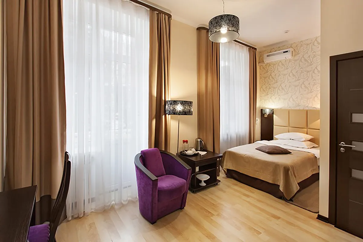 13 м2, вид на город, односпальная кровать, балкон. Количество гостей: 1Стандартный 2-местный (Стандарт+)