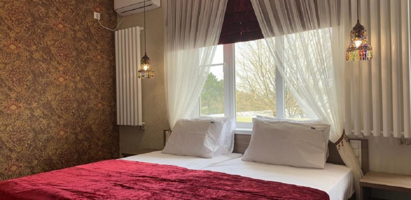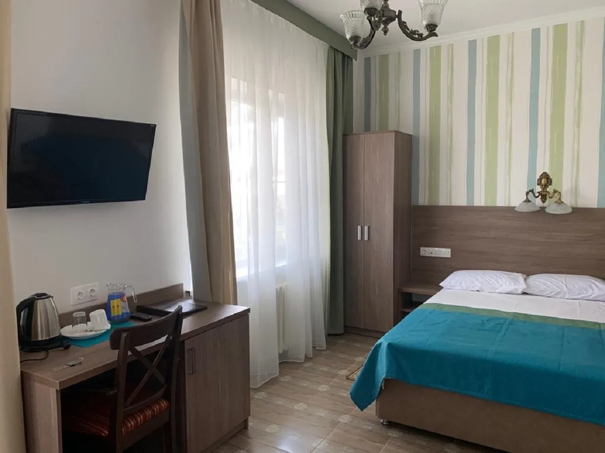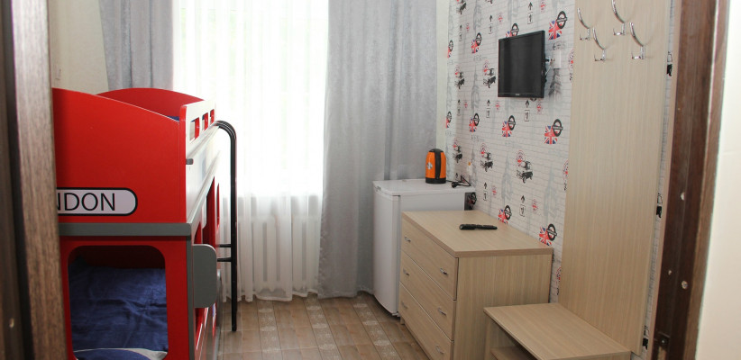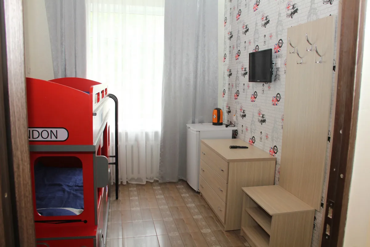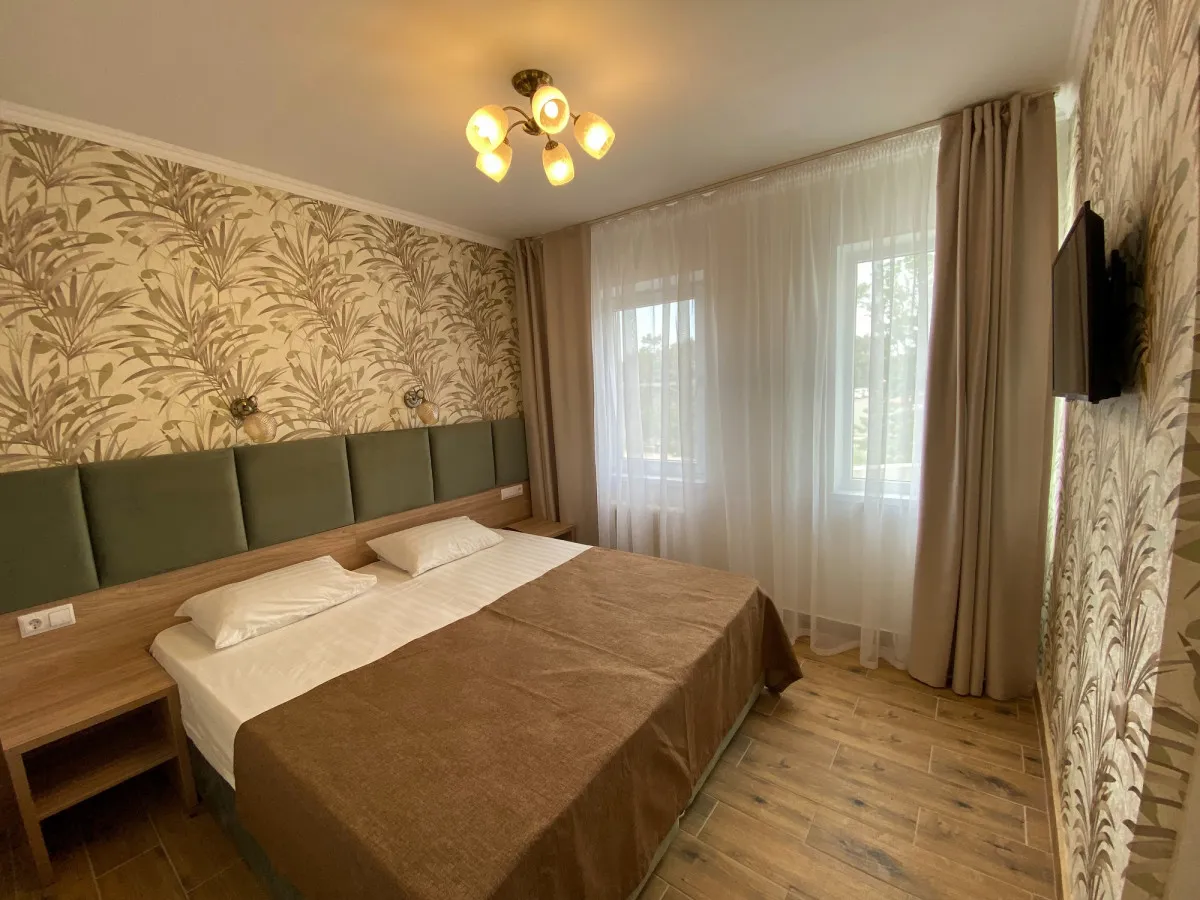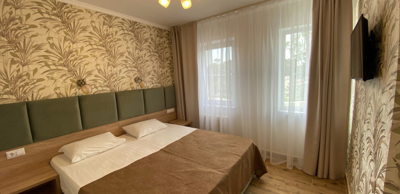 20-26 м2, три односпальные кровати и диван-кровать или две односпальные кровати и детская двухъярусная кровать, терраса (кроме корпуса №6). Количество гостей: 5Двухместный 1 категории (Корпус №6)