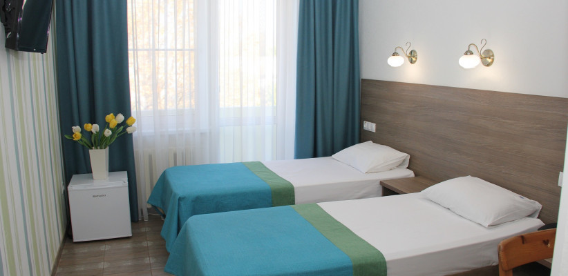 12-15 м2, две односпальные кровати, имеются номера с дополнительными местами (кресло-кровать). Количество гостей: 3Двухместный 1 категории «Комфорт» (Корпус №1, 3, 4)