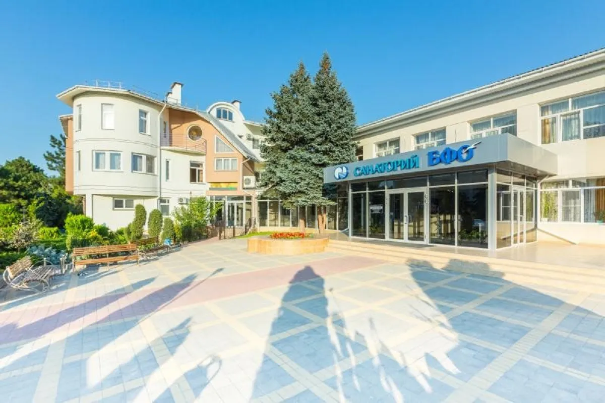Санаторий «БФО» находится в 3 км от центра Анапы, рядом с курортным парком и в 100 метрах от старинного маяка, серф-станции и других интересных мест. В шаговой доступности расположены набережная, магазины и рестораны. Санаторий состоит из шести малоэтажных корпусов (1-3 этажа), разделенных на две части. Основная часть включает корпуса №1, 3, 4 и 6, где расположены лечебная база, столовая, бассейн, а также детская и спортивная площадки. Корпус №6 соединен с лечебно-административной зоной, в то время как корпус №1 связан с водолечебницей, а корпус №4 предназначен для физиотерапевтических процедур. Дополнительная часть с корпусами №2 и №5 находится в пяти минутах ходьбы от основной территории.